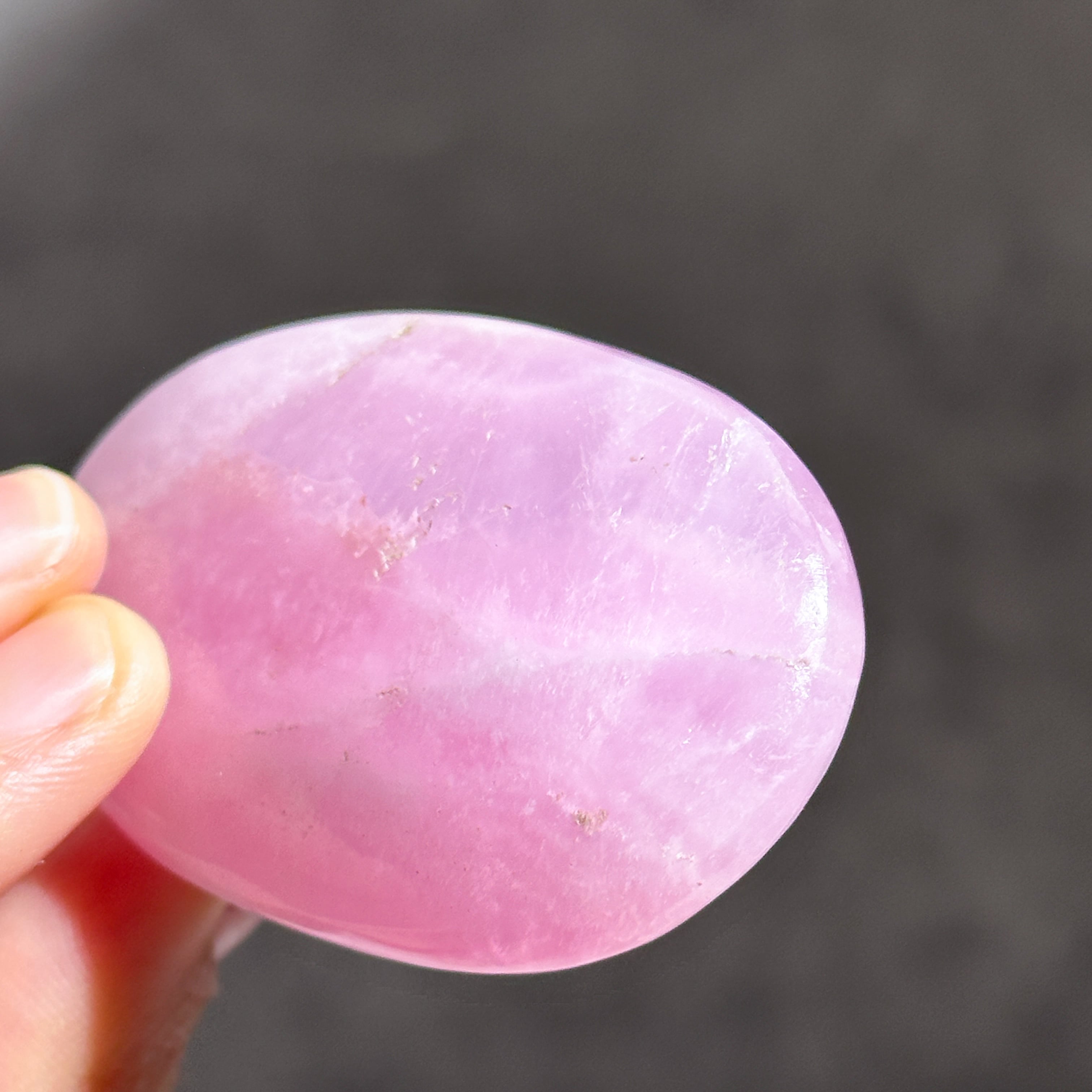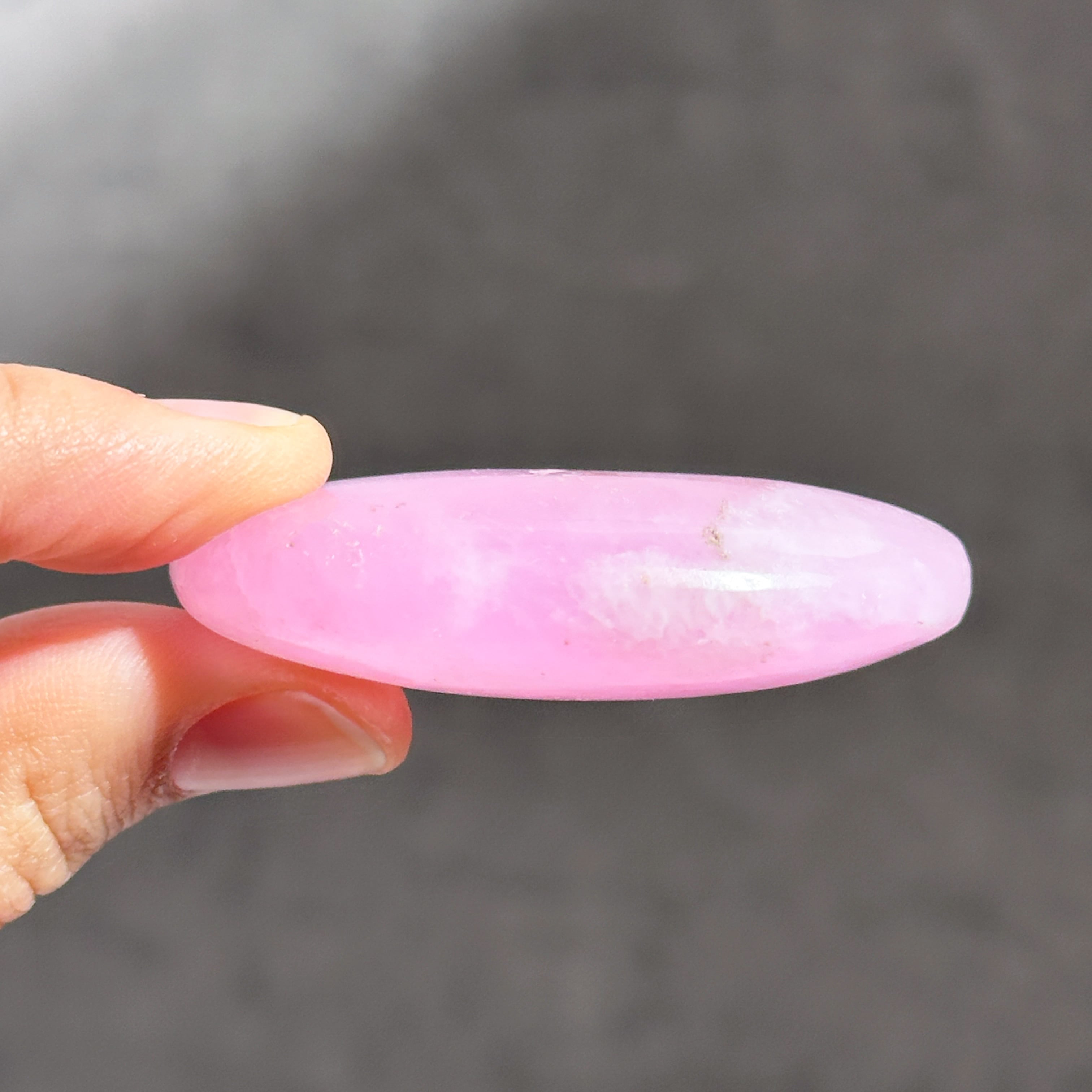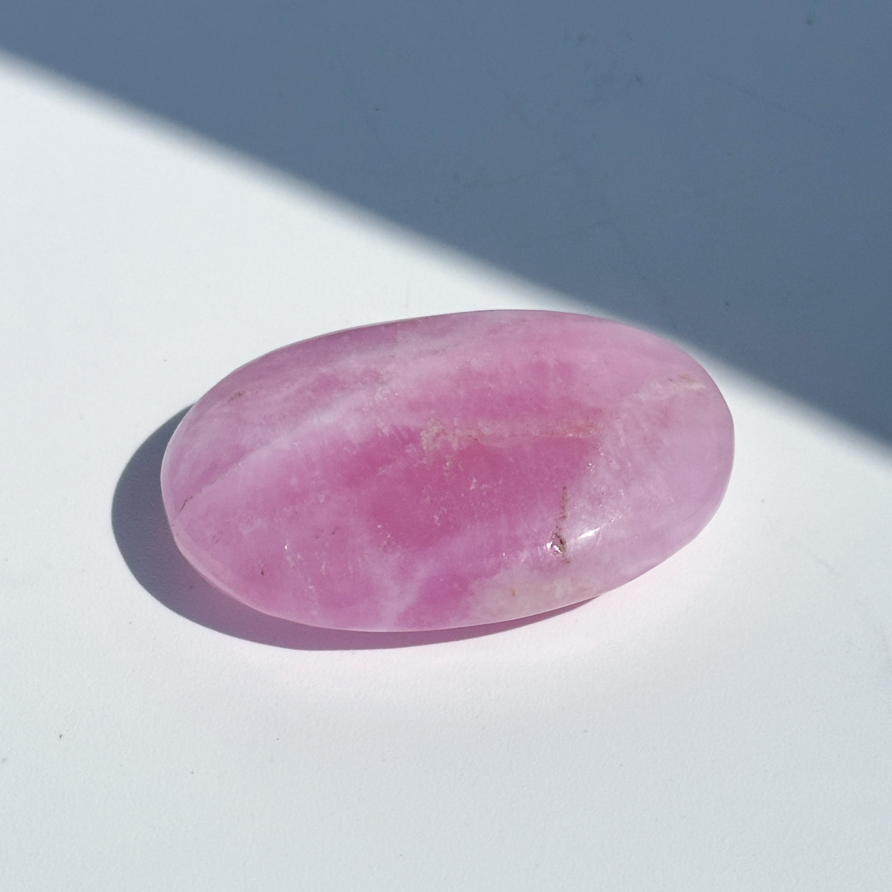 白色の部分も同じアラゴナイトです。アラゴナイト自体は世界中で産出する石ですが、このように、白とピンクが混じったものは、最近パキスタンで採掘されるようになったようで、他に類を見ない非常に珍しいものです✧