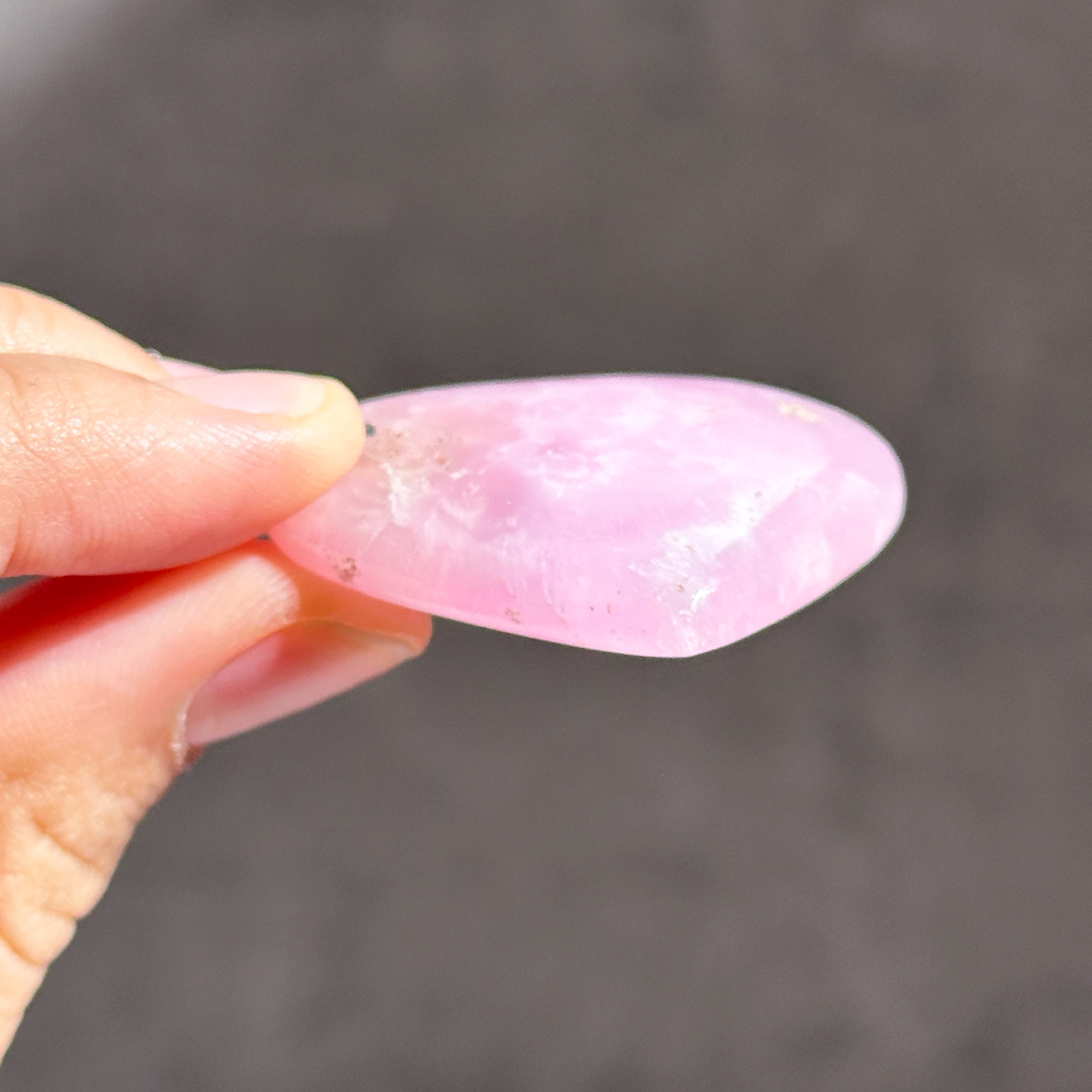 白色の部分も同じアラゴナイトです。アラゴナイト自体は世界中で産出する石ですが、このように、白とピンクが混じったものは、他に類を見ない非常に珍しいものです✧