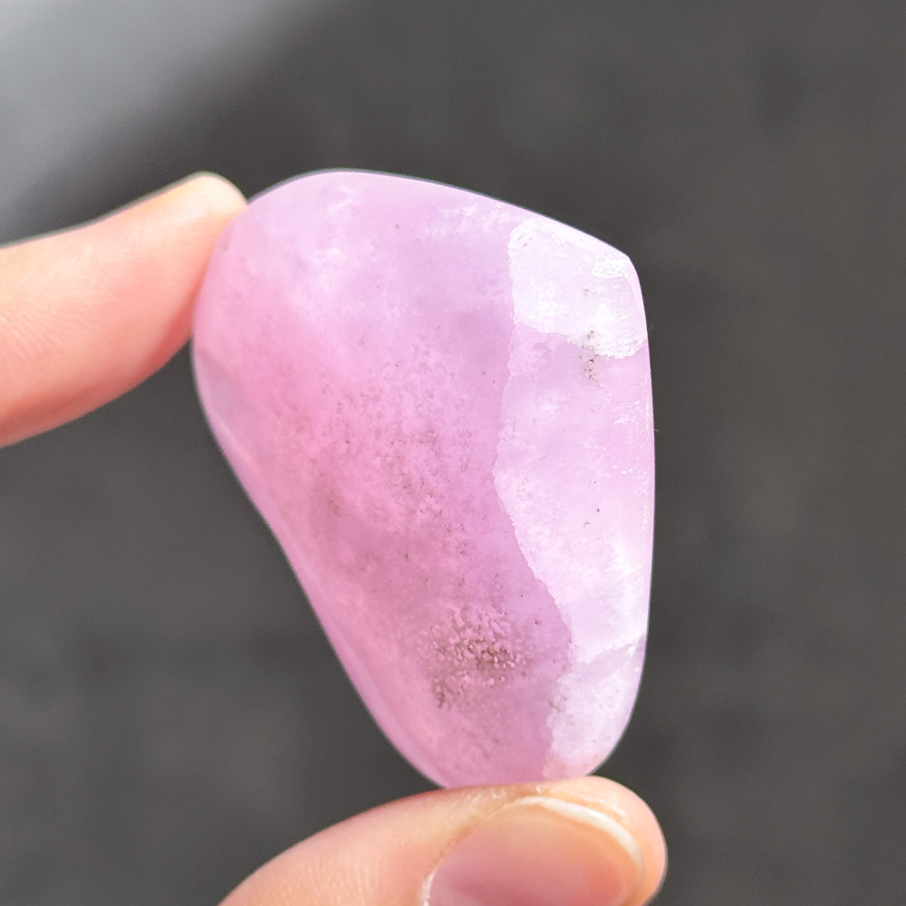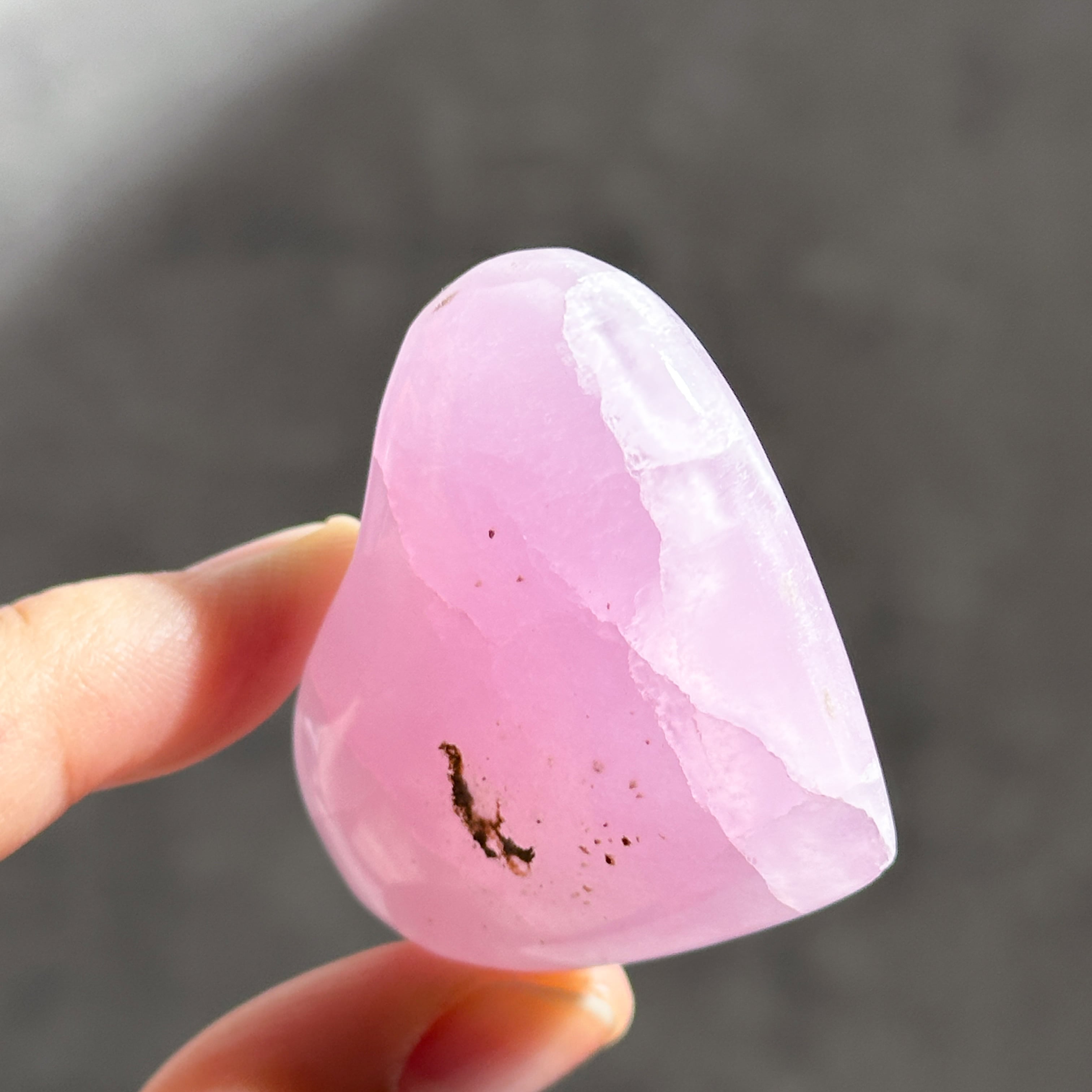 白色の部分も同じアラゴナイトです。アラゴナイト自体は世界中で産出する石ですが、このように、白とピンクが混じったものは、他に類を見ない非常に珍しいものです✧