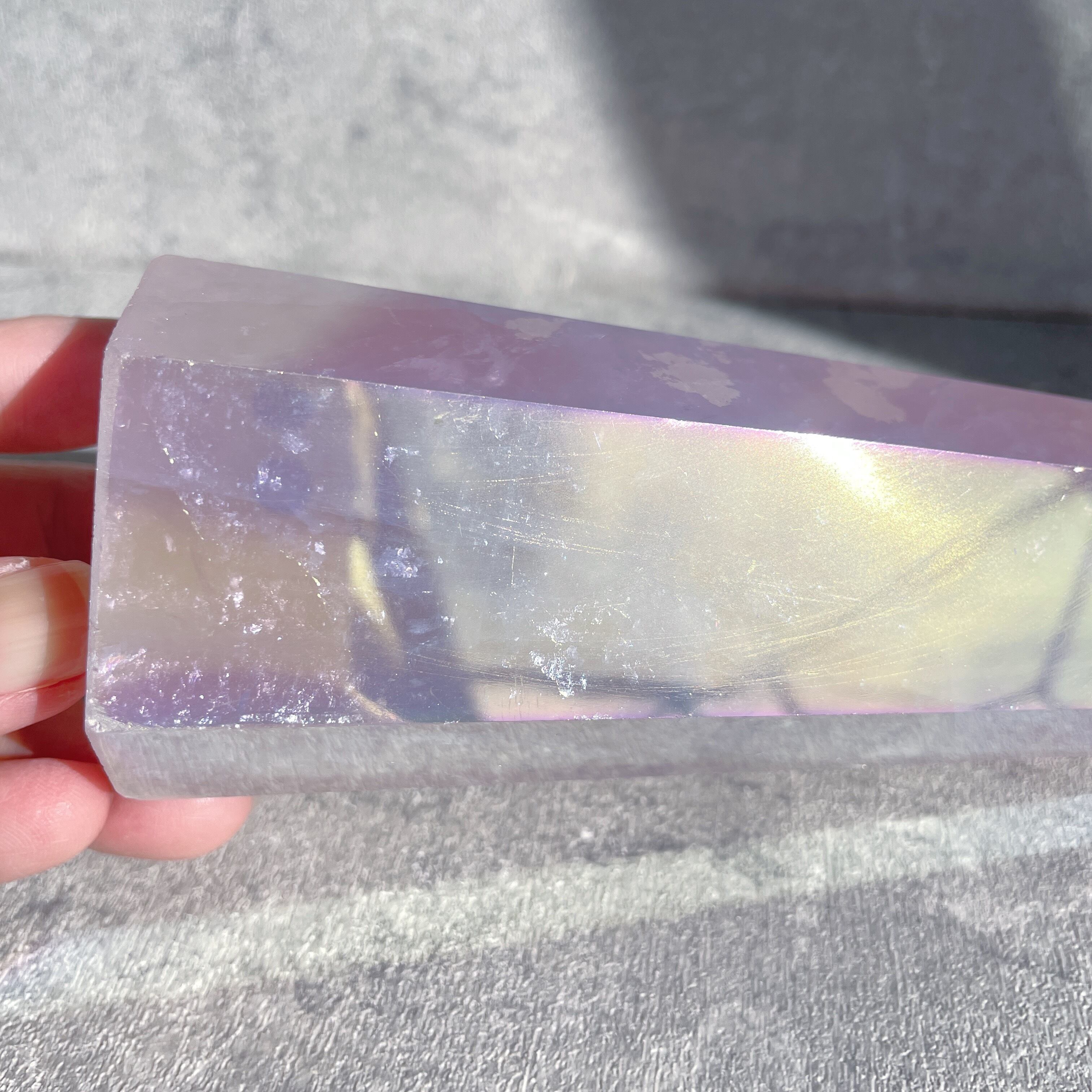 オーラクォーツは天然の水晶に真空状態で金属を癒着コーティングさせた、新時代のクリスタルです。