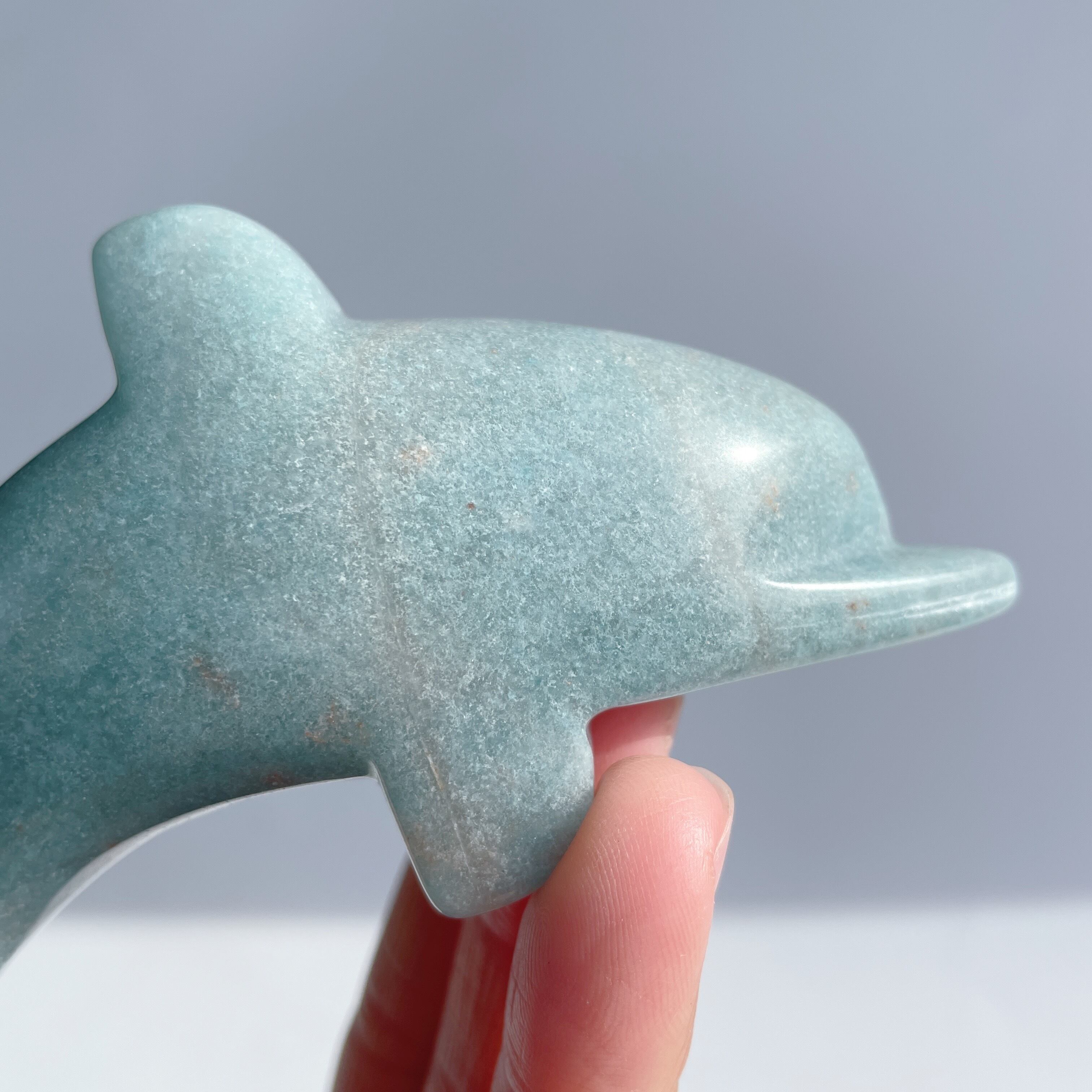 ブラジル産のトロレアイトをイルカ型に研磨したものです。