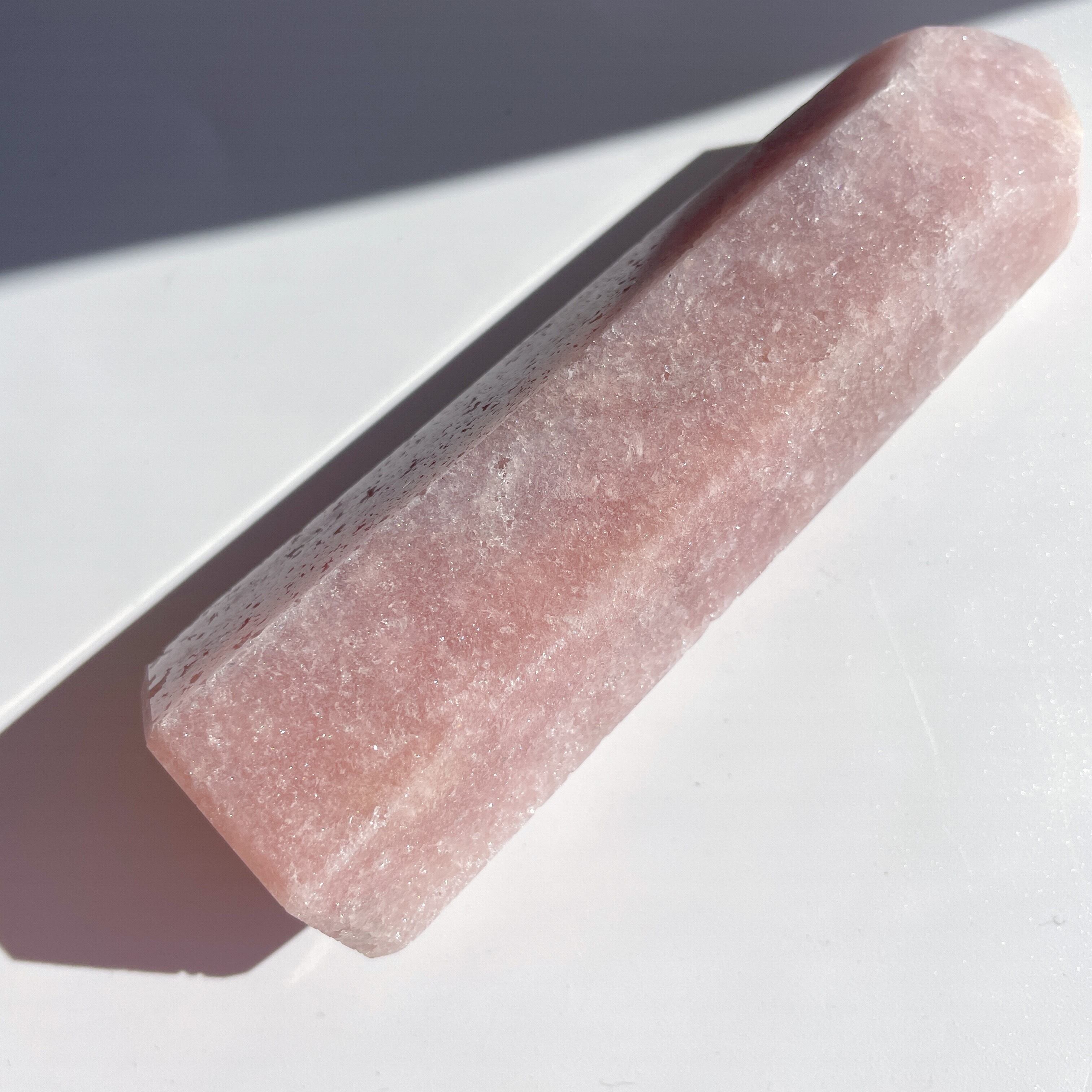 比べてみますと、ピンクアメジストのパステルピンクはもっと穏やかな癒しのムード。