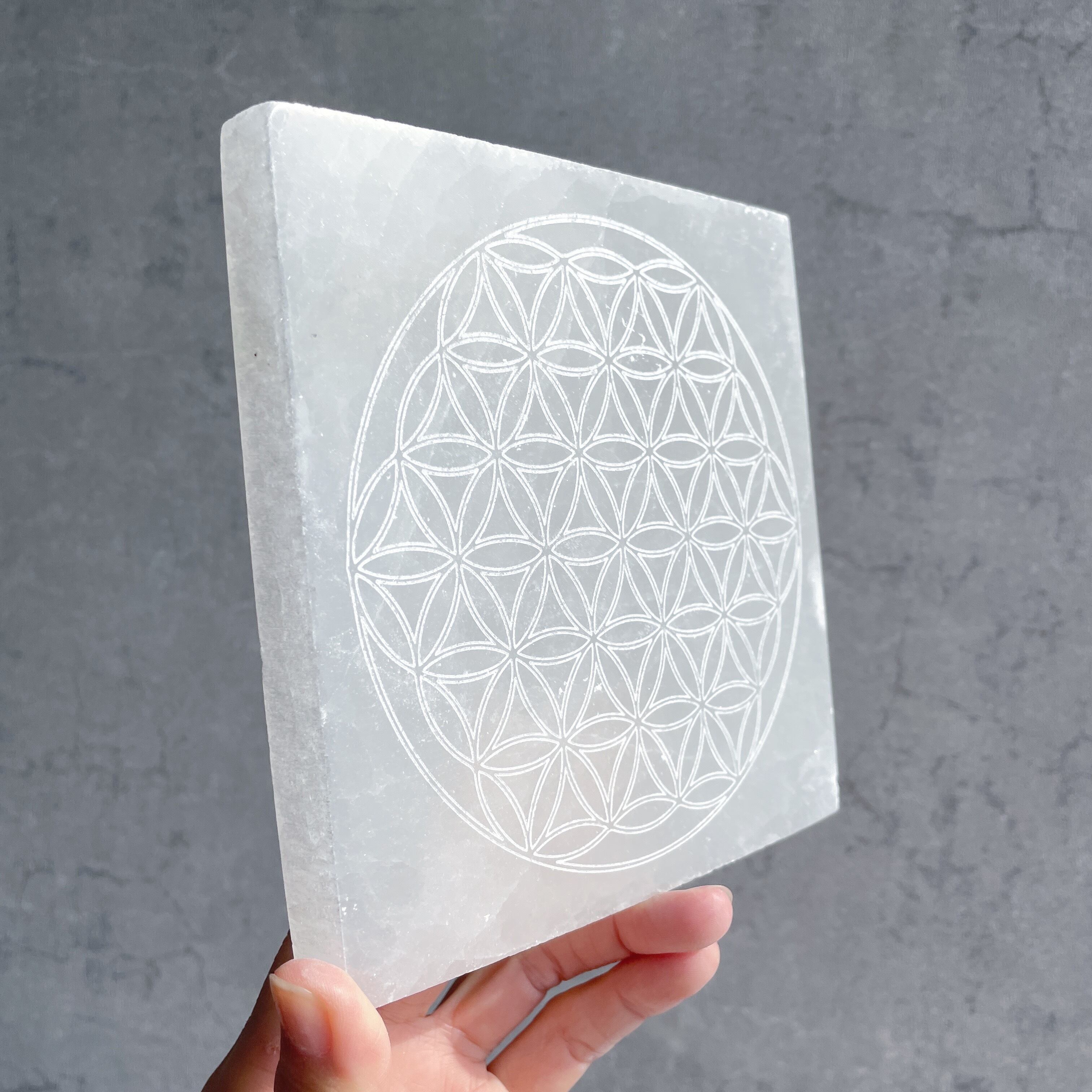 セレナイトのプレート(フラワーオブライフ)スクエア04◇Selenite Flower of Life◇クリスタルグリッド◇神聖幾何学