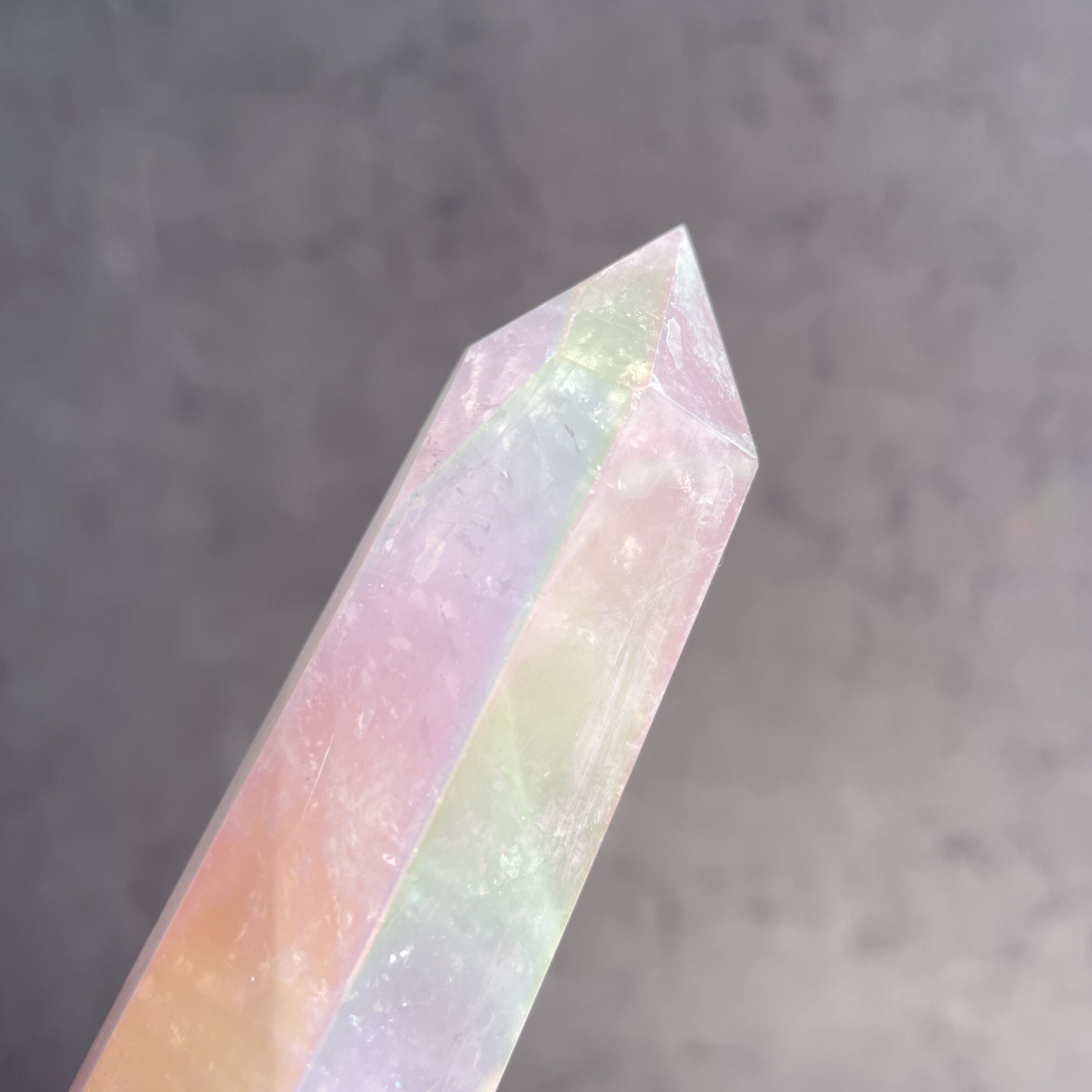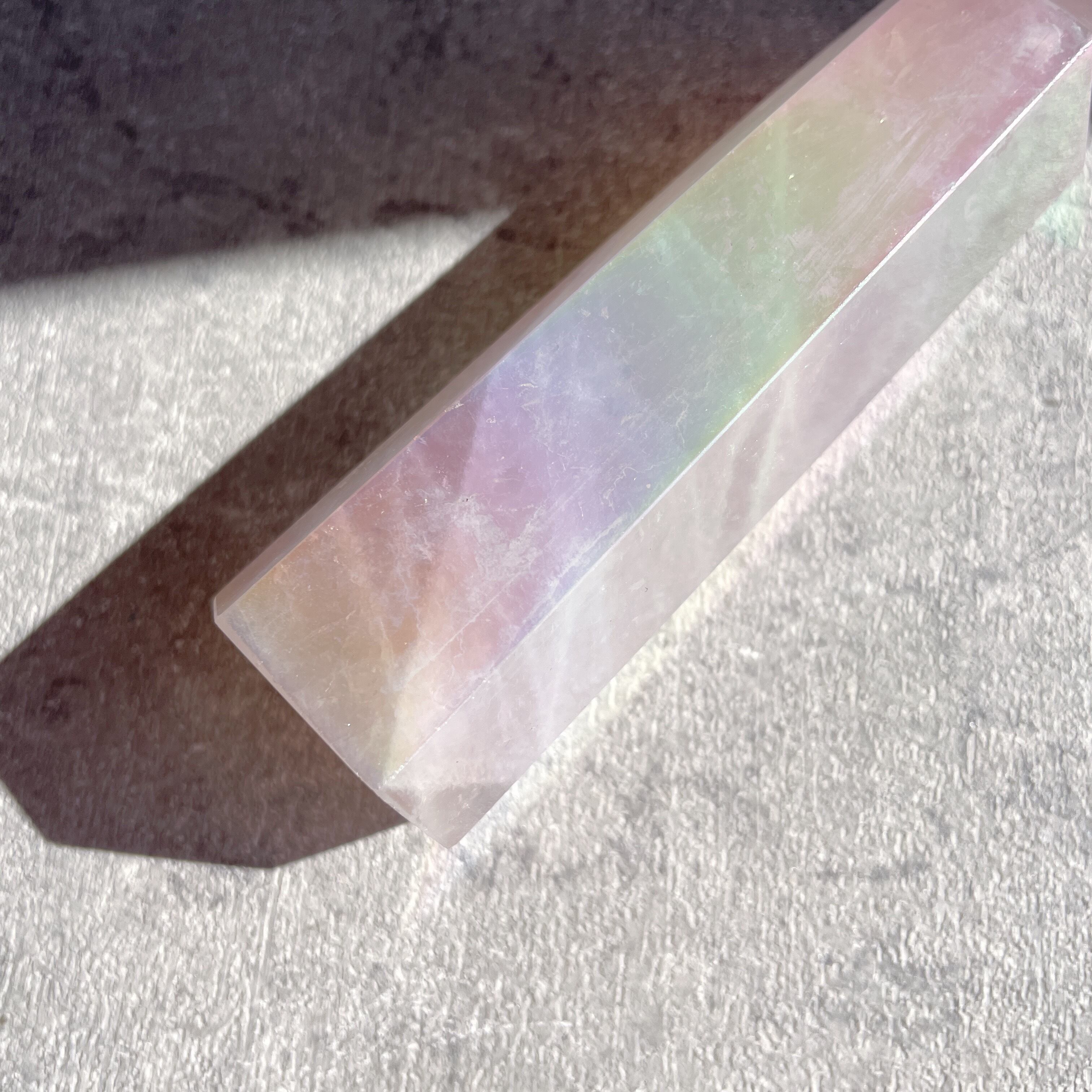 本品はローズクォーツのタワーに、エンジェルオーラ加工を施したもの◎