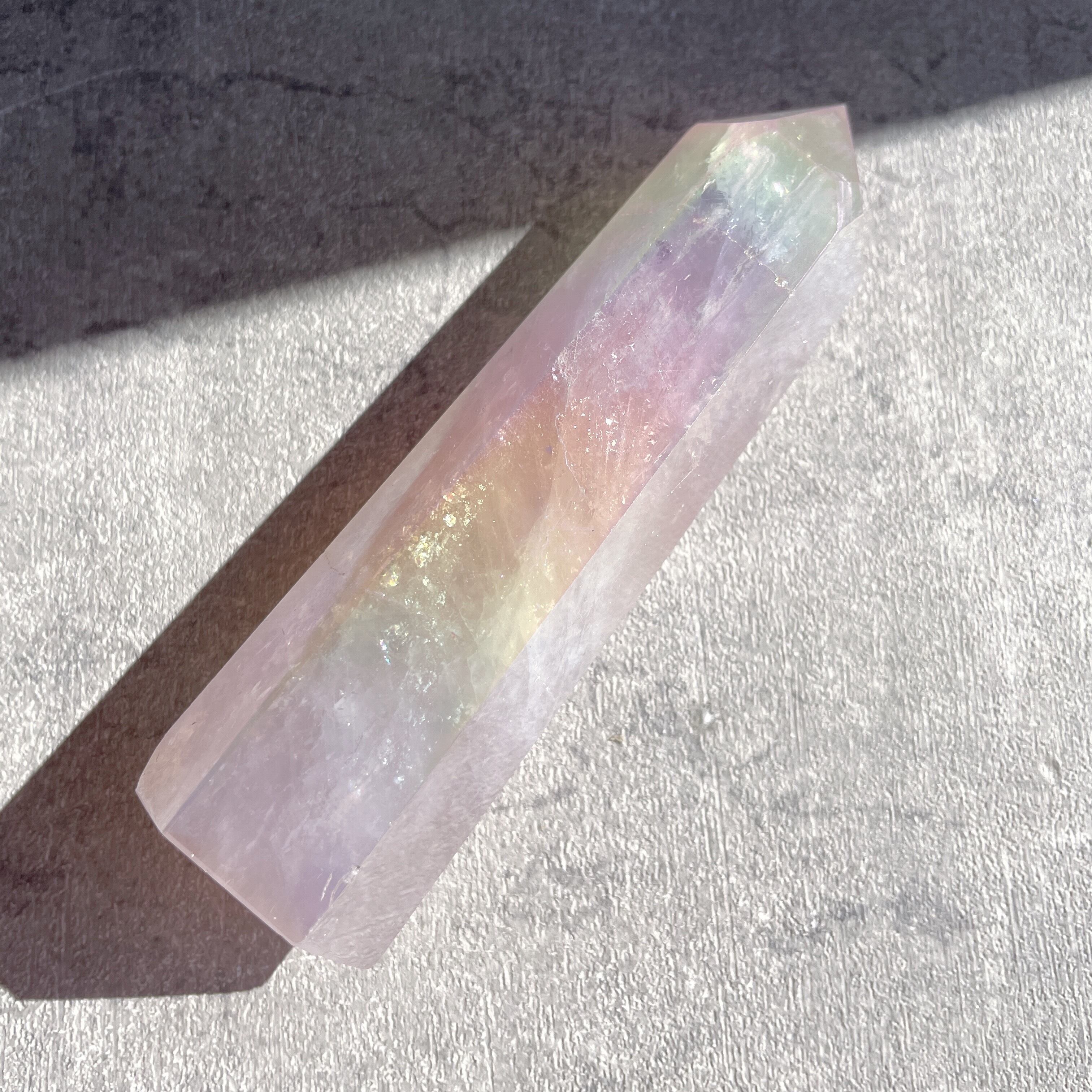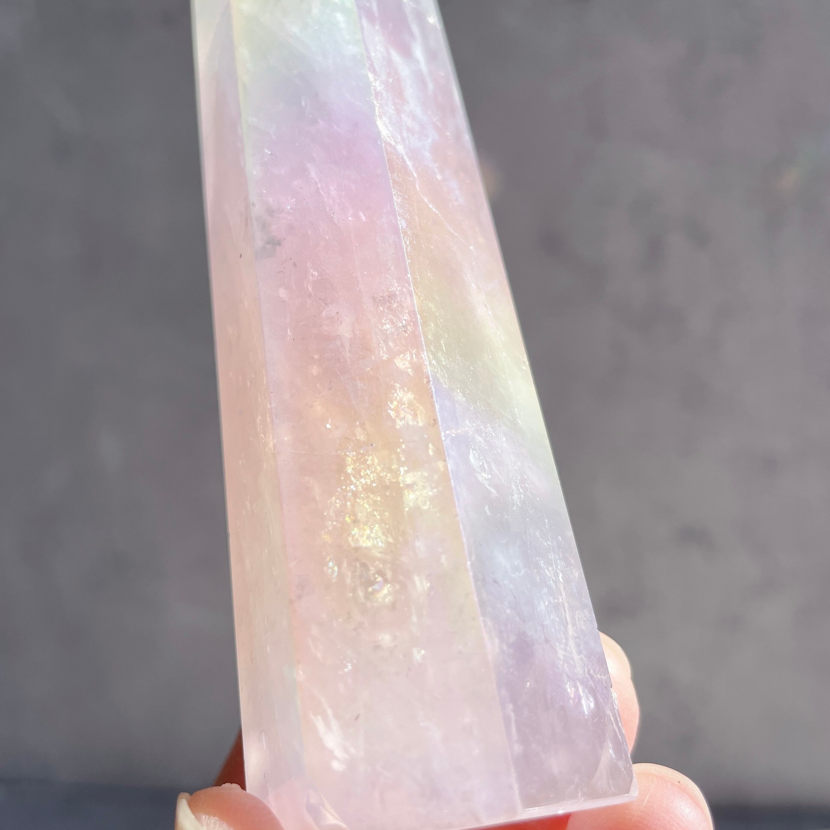 本品はローズクォーツのタワーに、エンジェルオーラ加工を施したもの◎