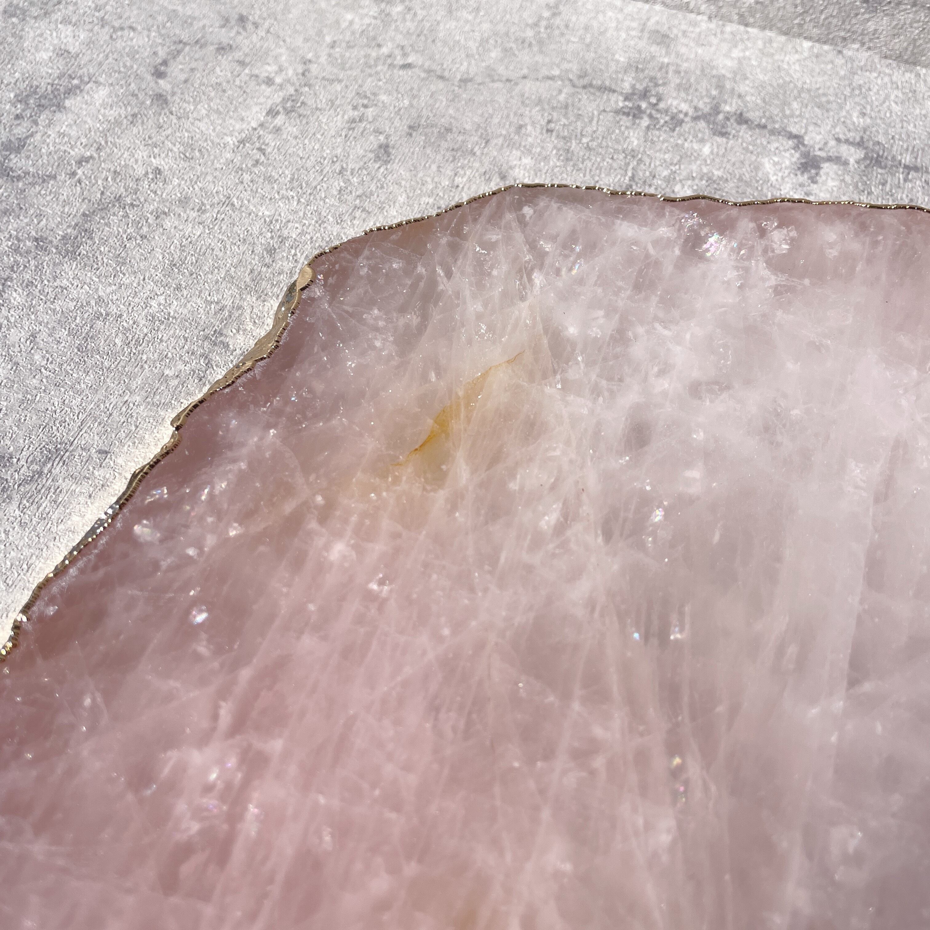 ブラジル産のローズクォーツが、インテリアに馴染むプレートになりました。