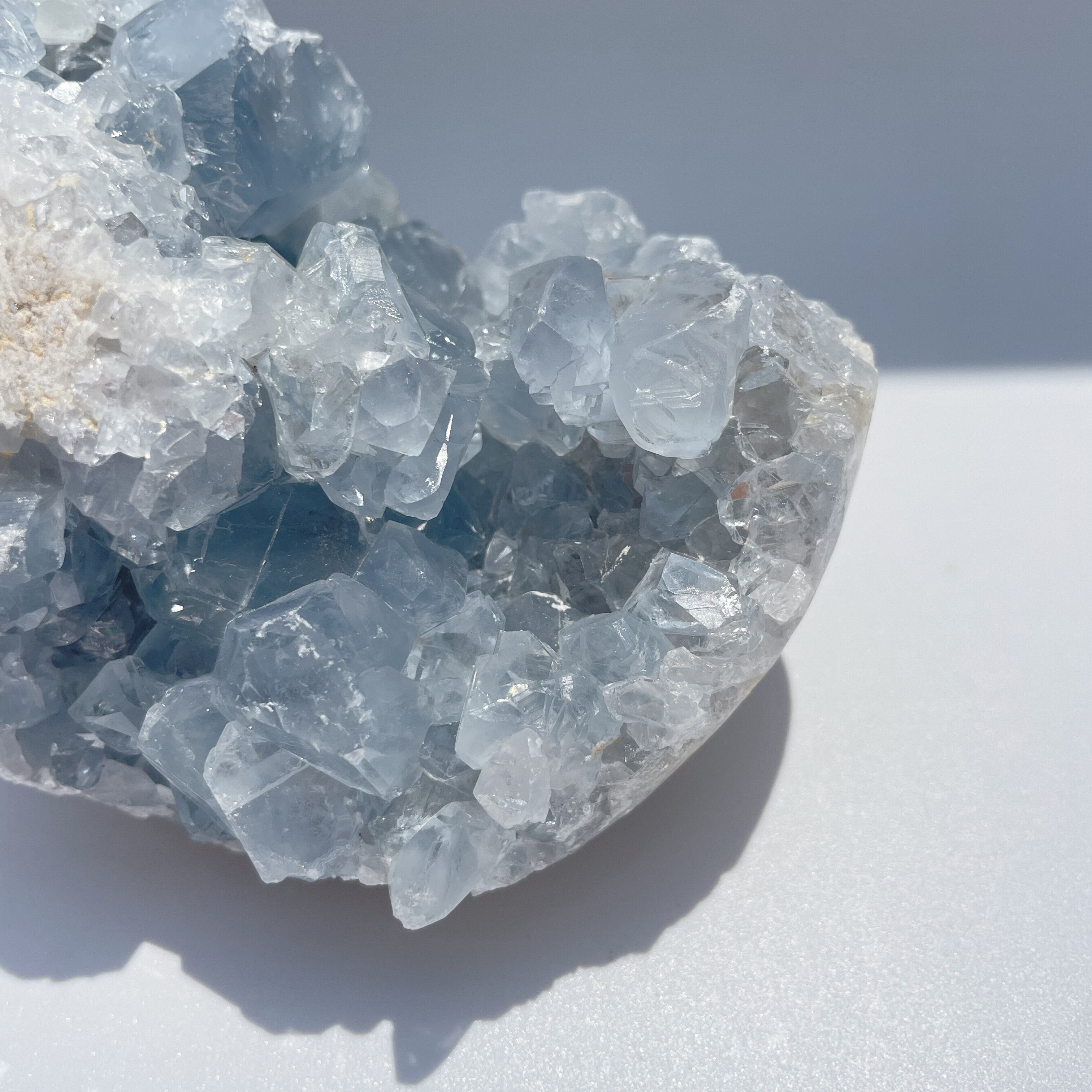 幾多あるブルーの天然石の中でも、晴れた空の穏やかさに最も近い印象があるのがセレスタイト。柔らかく色味、優しい輝きから、エンジェルを連想する人も多いようです。