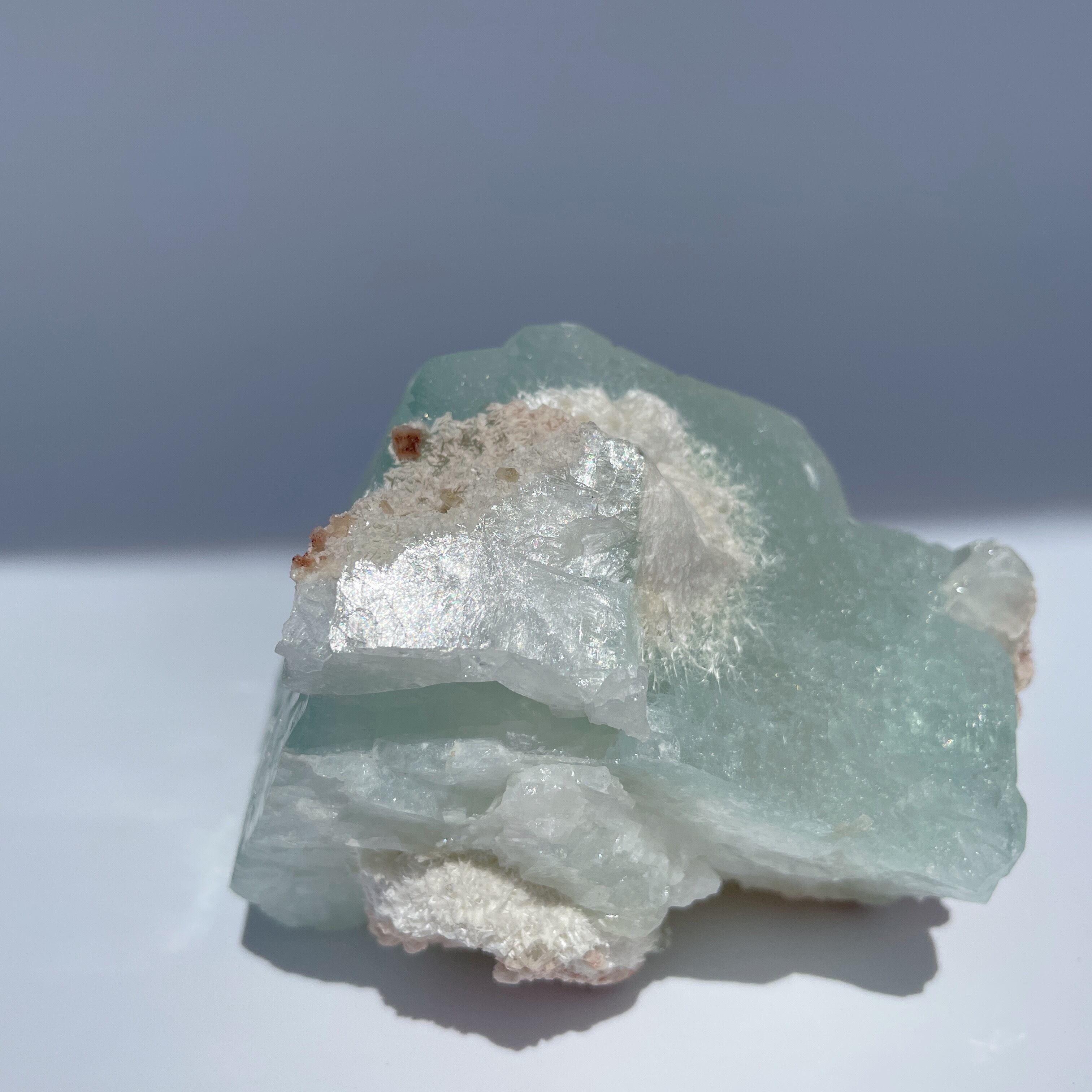 アポフィライトは結晶の強い輝きと、砂糖菓子のように繊細な結晶が魅力の鉱物。