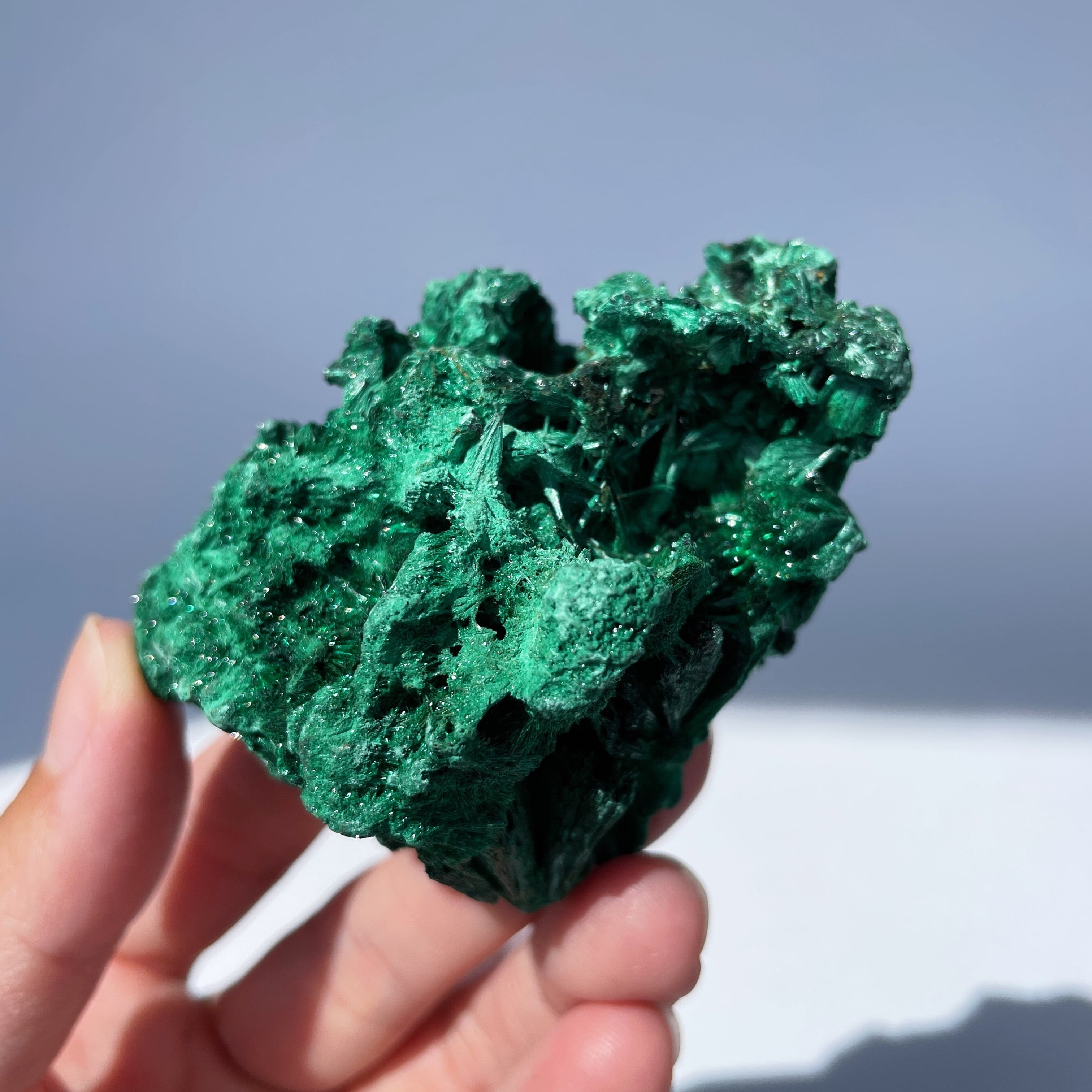 今回ご紹介するマラカイトは、繊維状の結晶がクラスターになったもの。