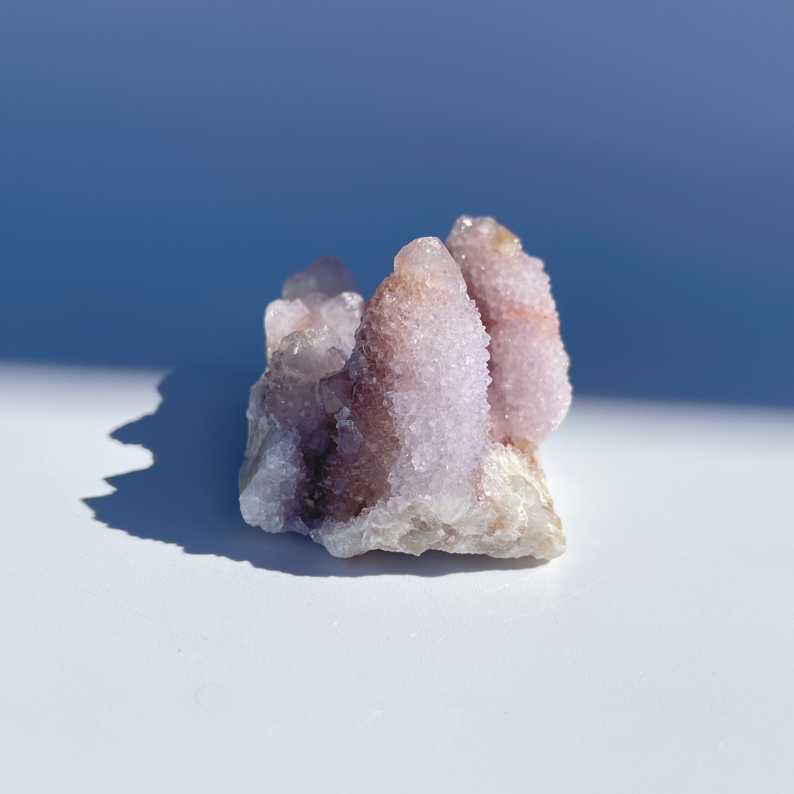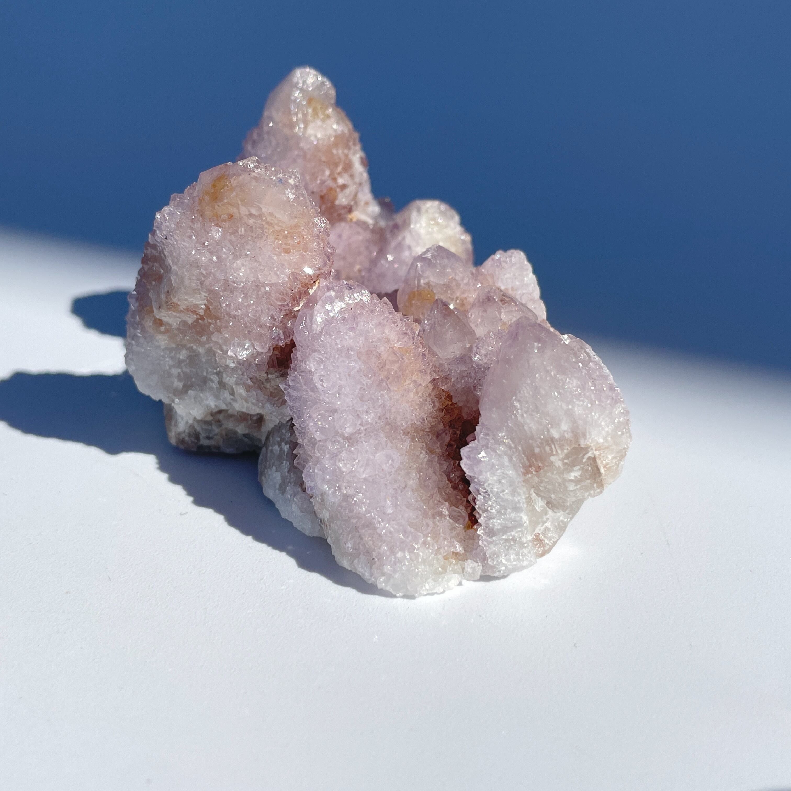 砂糖菓子のように美しい、ライラック色(淡い紫色)のスピリットクォーツのクラスターのご紹介です。