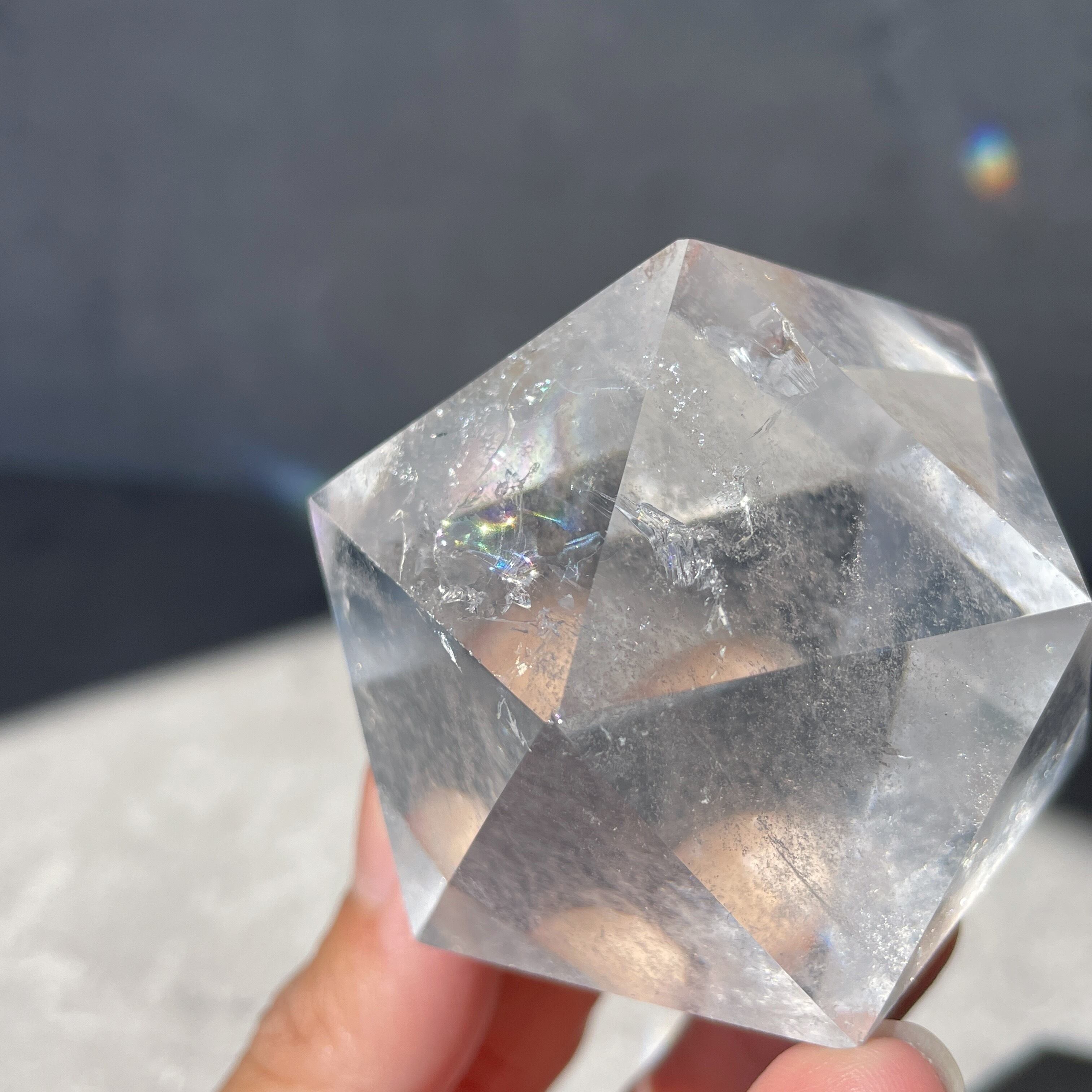 ブラジル・ミナスジェライス産のクリアクォーツを、正二十面体に研磨したものです。