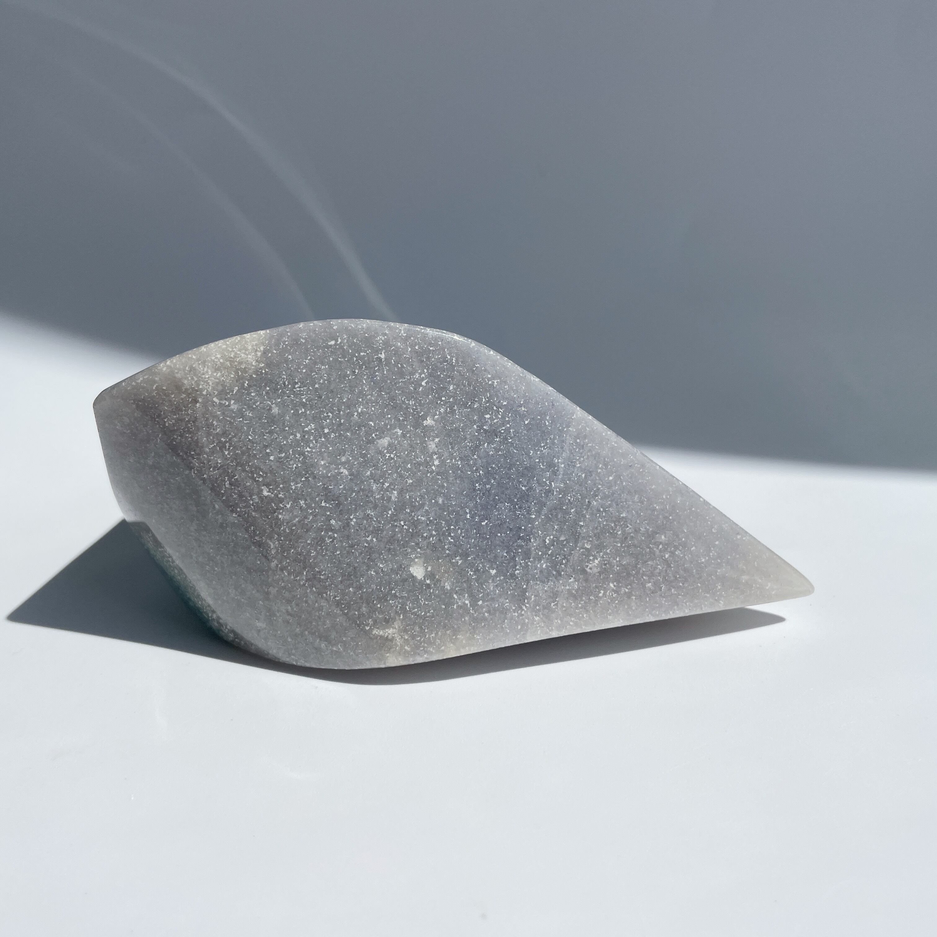 ここでは「トロレアイト」と呼びますが、トロレアイト(青)・クォーツ(白)・ラズライト(濃い青)が混じったもののようで、曲線を描くグラデーションと引き込まれるような色合いを持つ鉱物です。面によって異なる表情を見せる、世界に二つとないお品です。