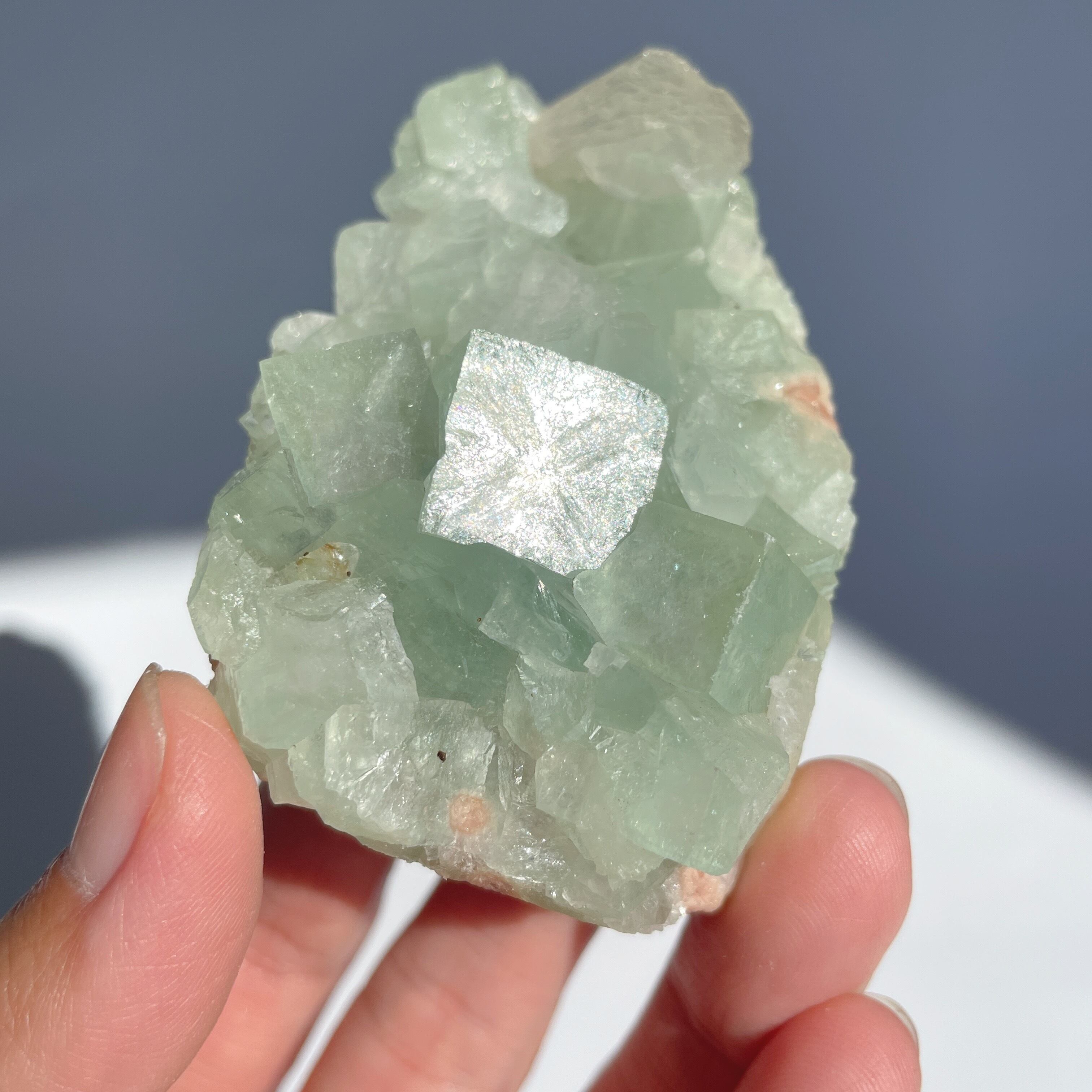 今回ご紹介するグリーンアポフィライトは、立方体の結晶がまるで琥珀糖のよう。