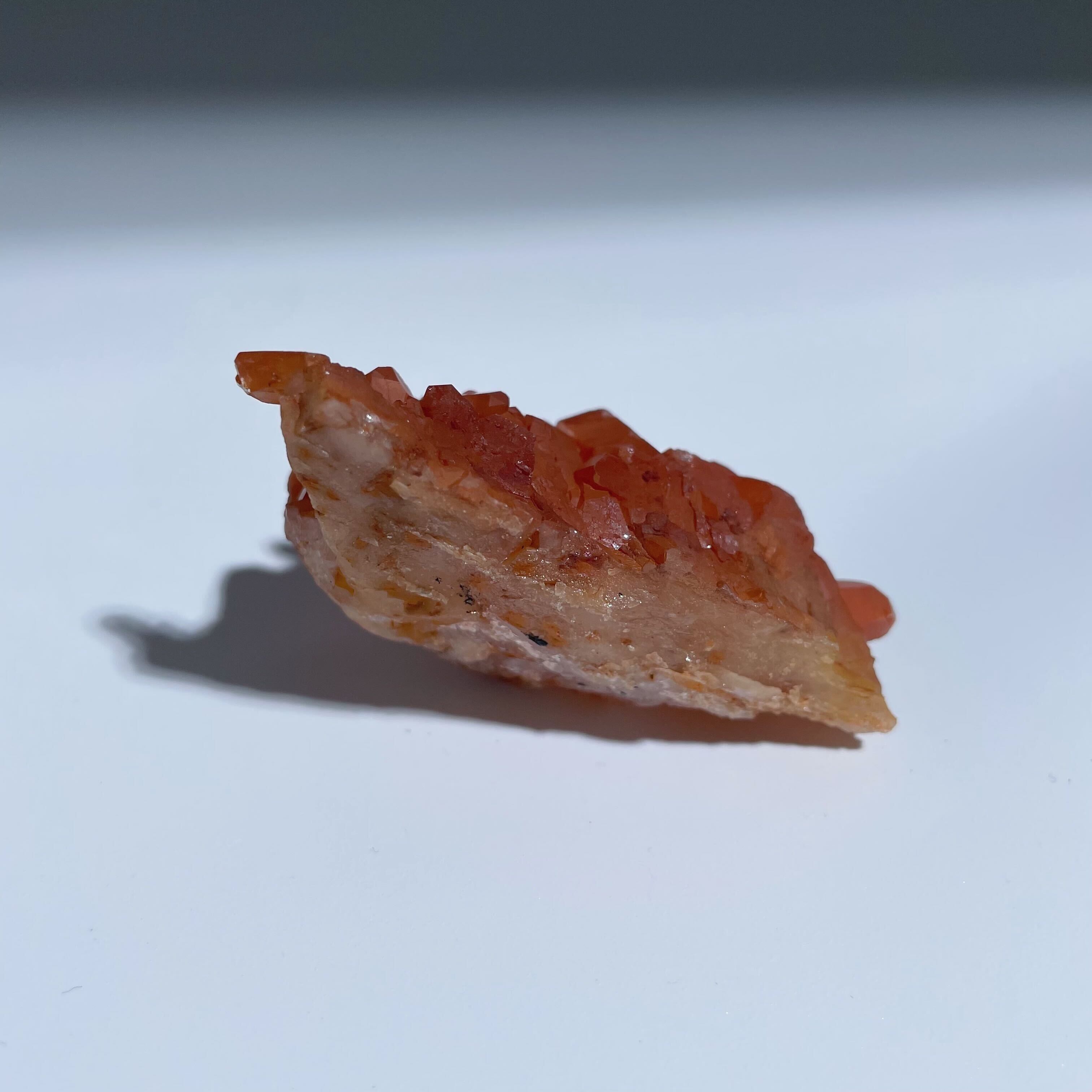 タンジェリンクォーツは、水晶(クリアクォーツ)の表面にヘマタイトが付着して、