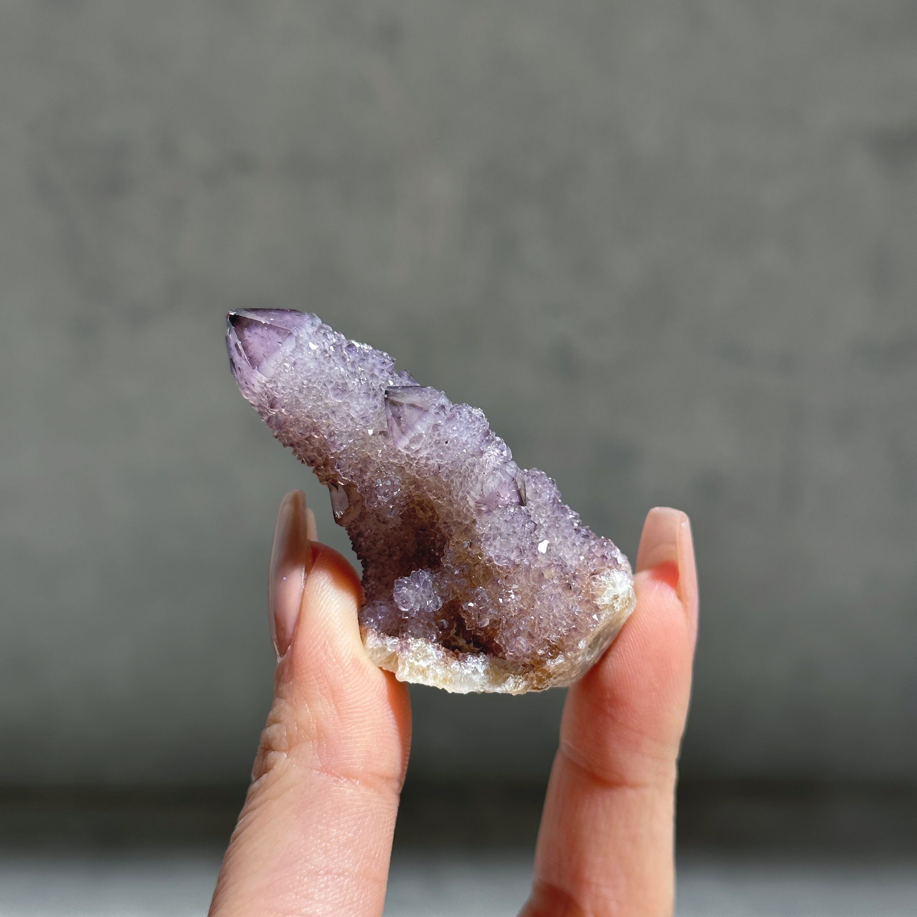 砂糖菓子のように美しい、ライラック色(淡い紫色)のスピリットクォーツのクラスターを、