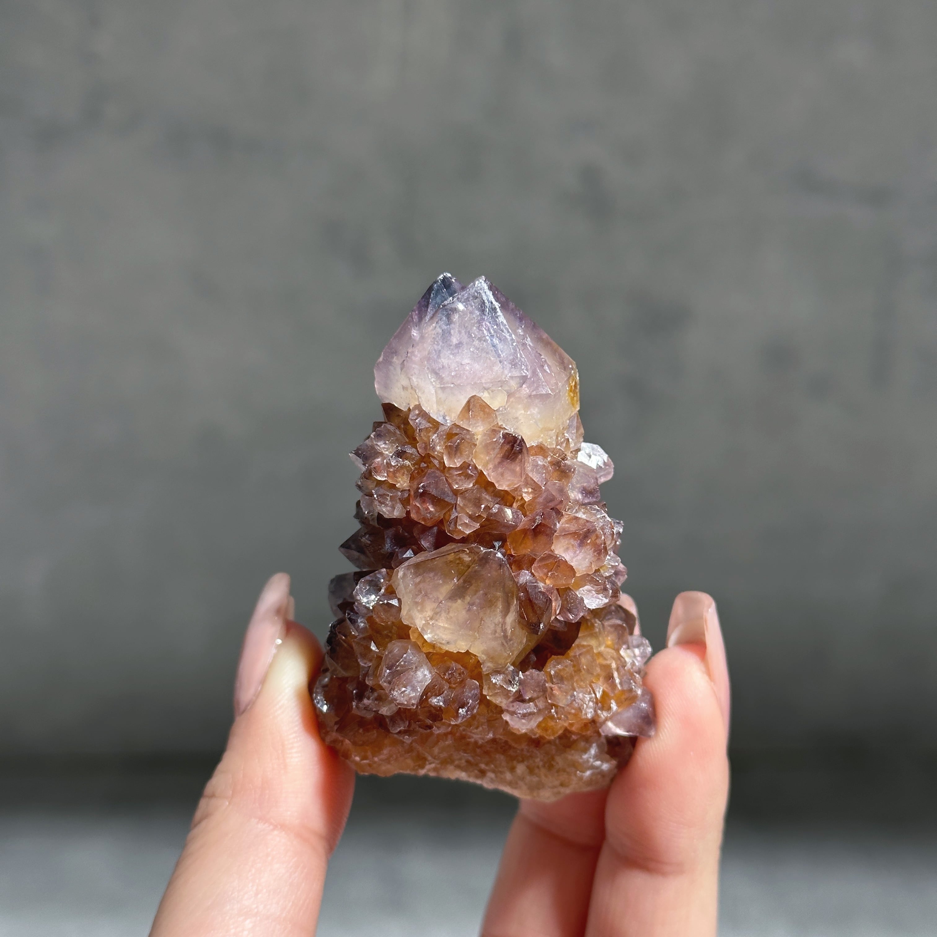 砂糖菓子のように美しい、ライラック色(淡い紫色)のスピリットクォーツのクラスターを、