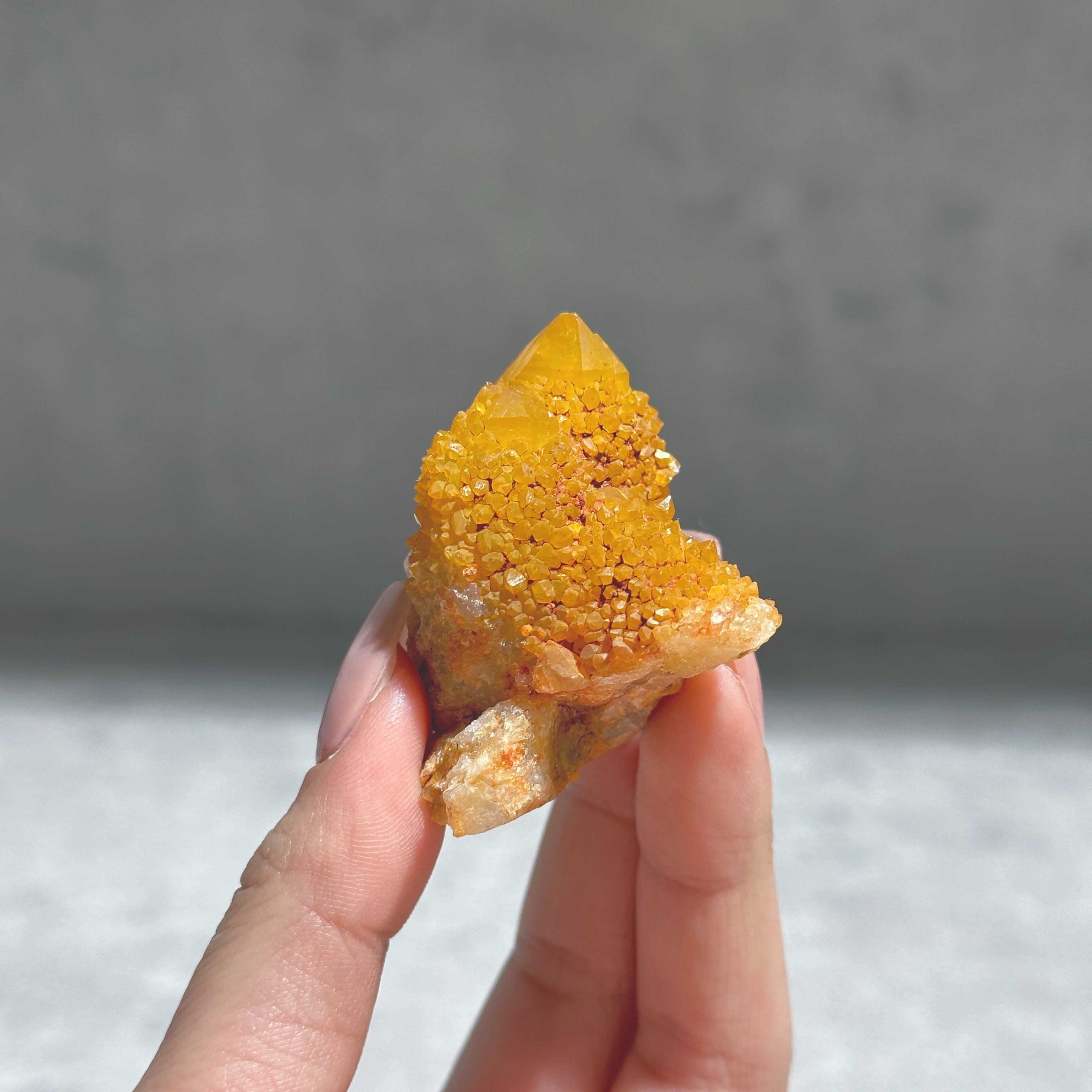 トゲトゲとしたサボテンのような姿が特徴的な、南アフリカ産のサンシャインクォーツ。