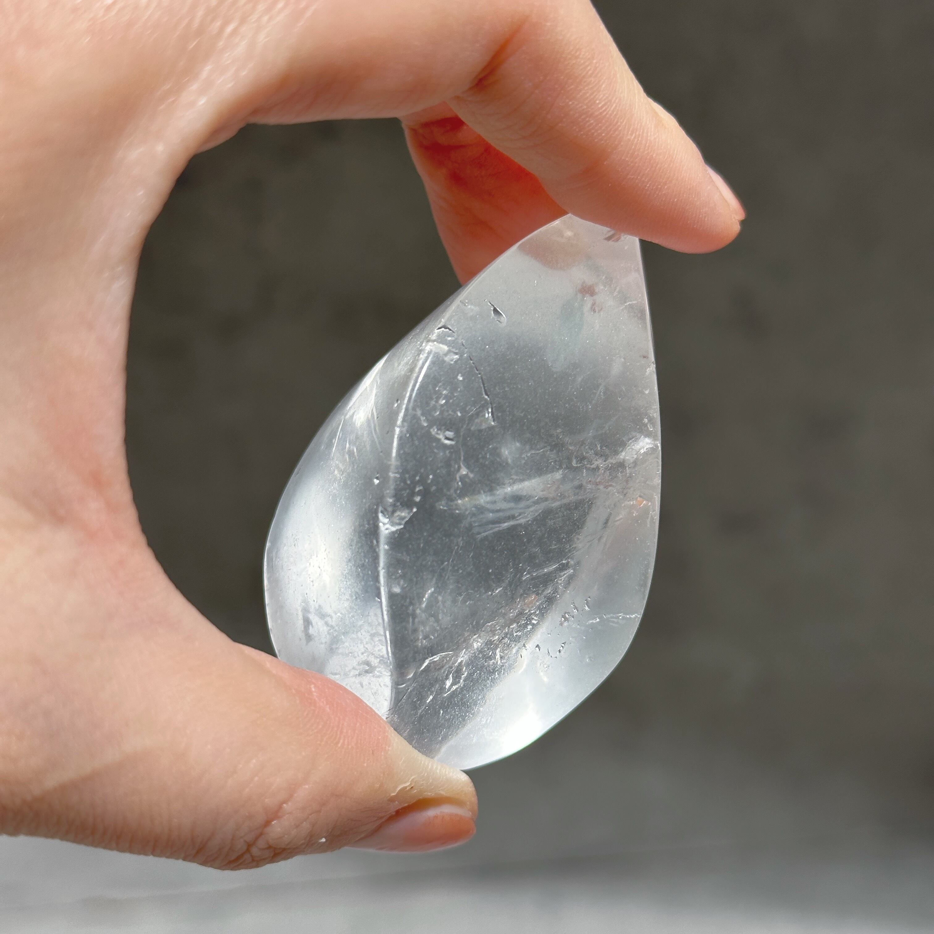 ブラジル・ミナスジェライス産のクリアクォーツを、フレイム型に研磨したものです。