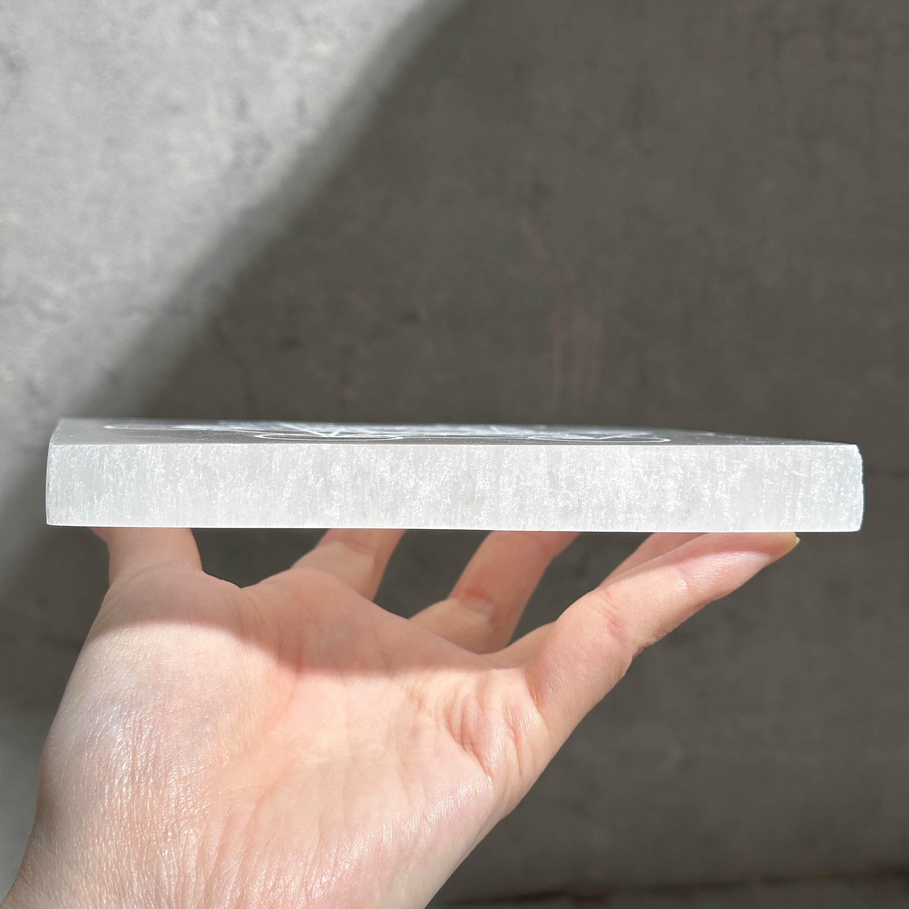 ※正方形にカットされたセレナイトに対して、メタトロンキューブの刻印に多少のずれがあります。