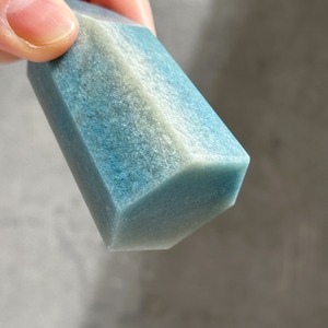 ここでは「トロレアイト」と呼びますが、トロレアイト(青)・クォーツ(白)・ラズライト(濃い青)が混じったもののようで、曲線を描くグラデーションと引き込まれるような色合いを持つ鉱物です。面によって異なる表情を見せる、世界に二つとないお品です。