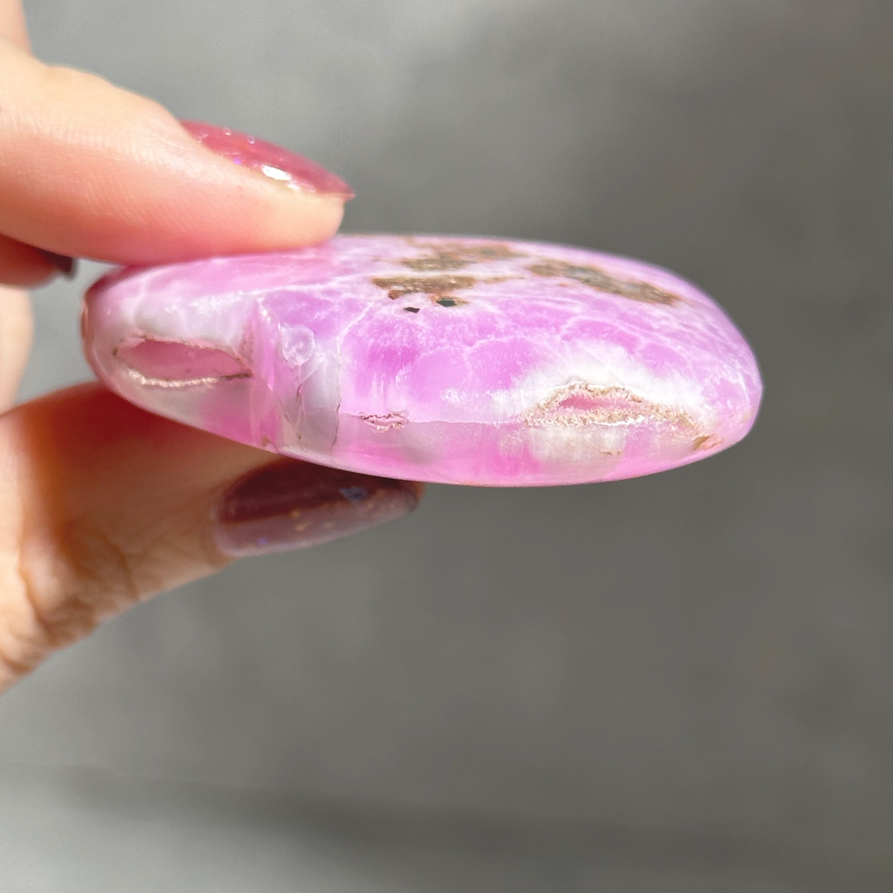 白色の部分も同じアラゴナイトです。アラゴナイト自体は世界中で産出する石ですが、このように、白とピンクが混じったものは、他に類を見ない非常に珍しいものです✧