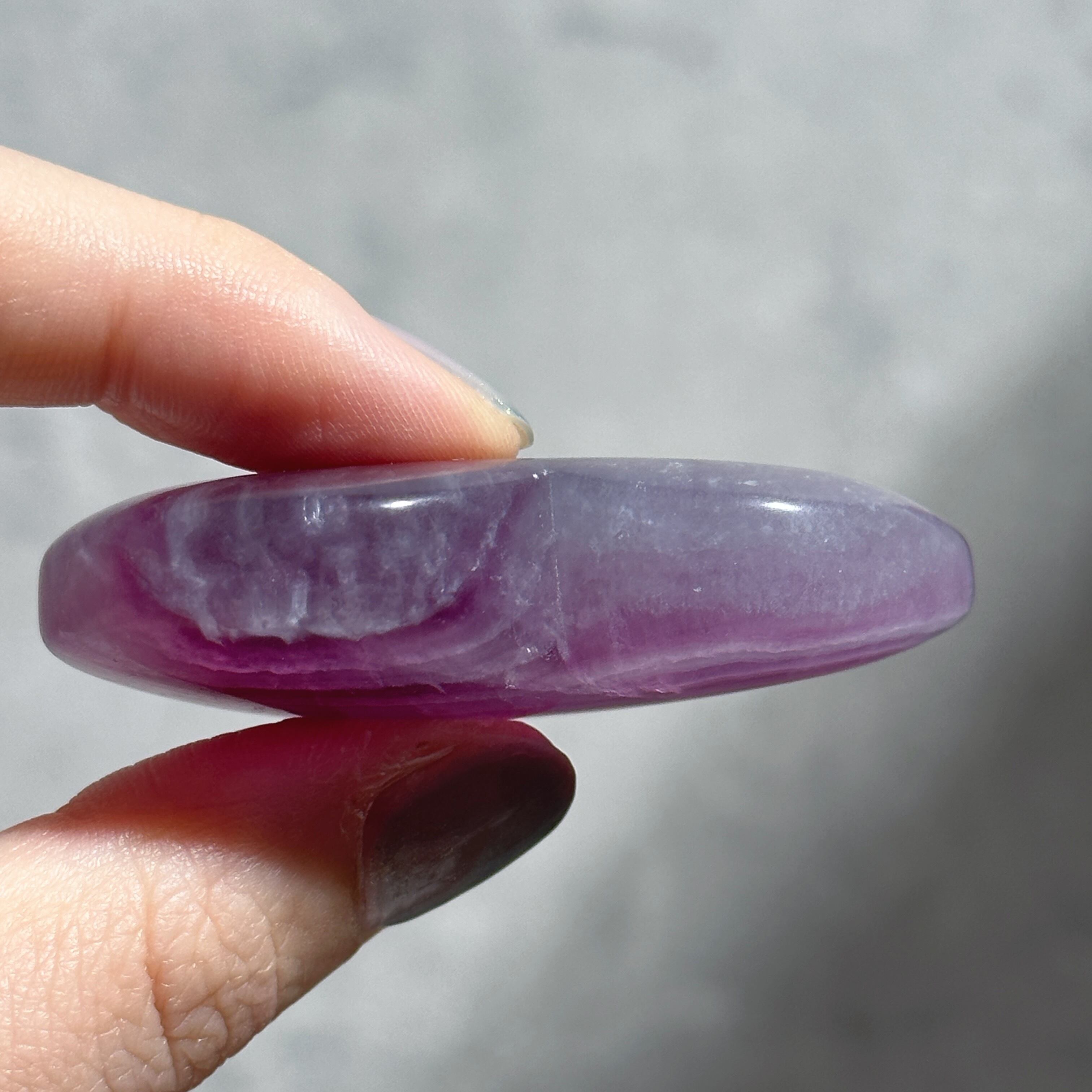 レインボーフローライトは複数のカラー(透明・パープル・ブルー・ピンク・グリーン)が共生し、水面のような曲線の模様を生み出しています。