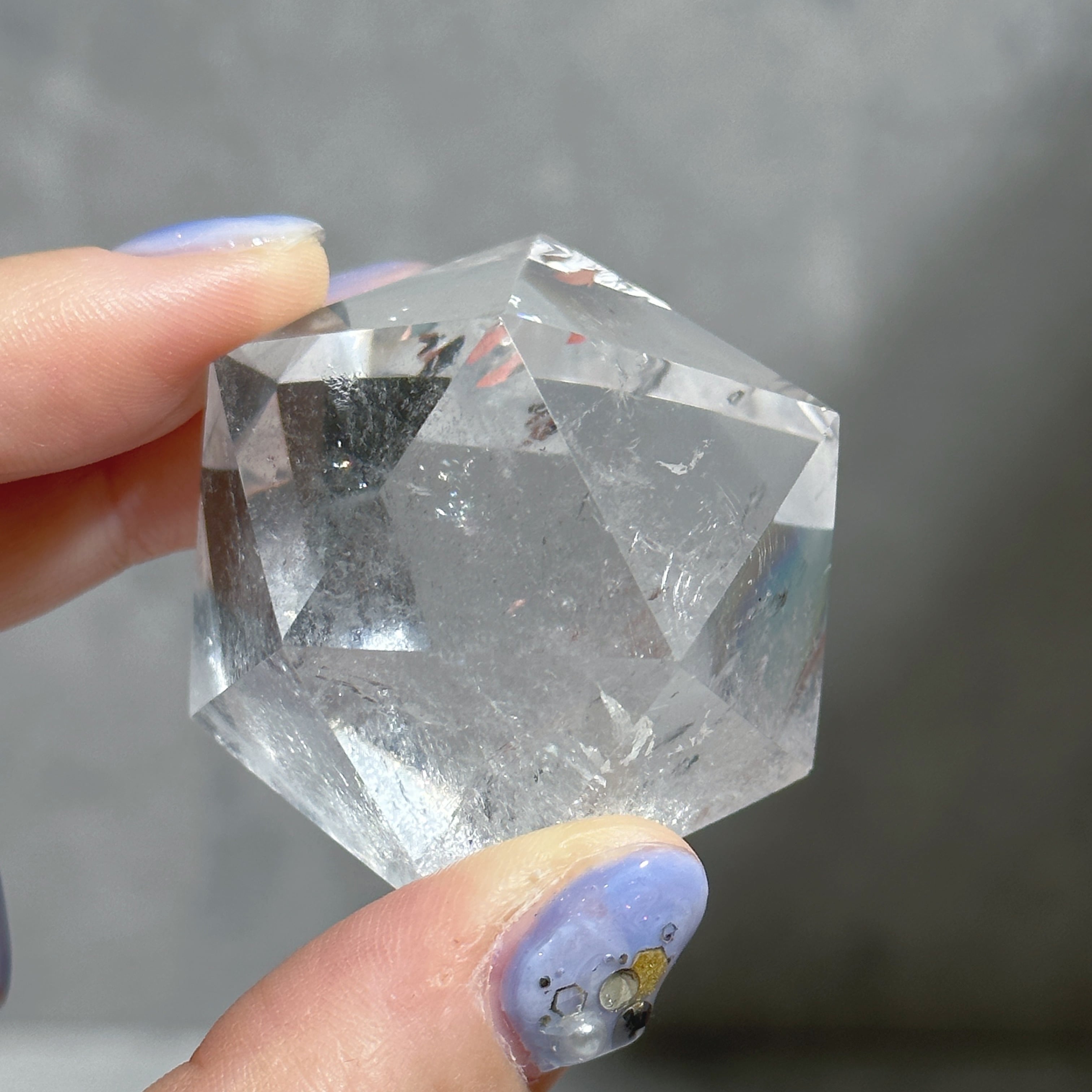 ブラジル・ミナスジェライス産のクリアクォーツを、正二十面体に研磨したものです。