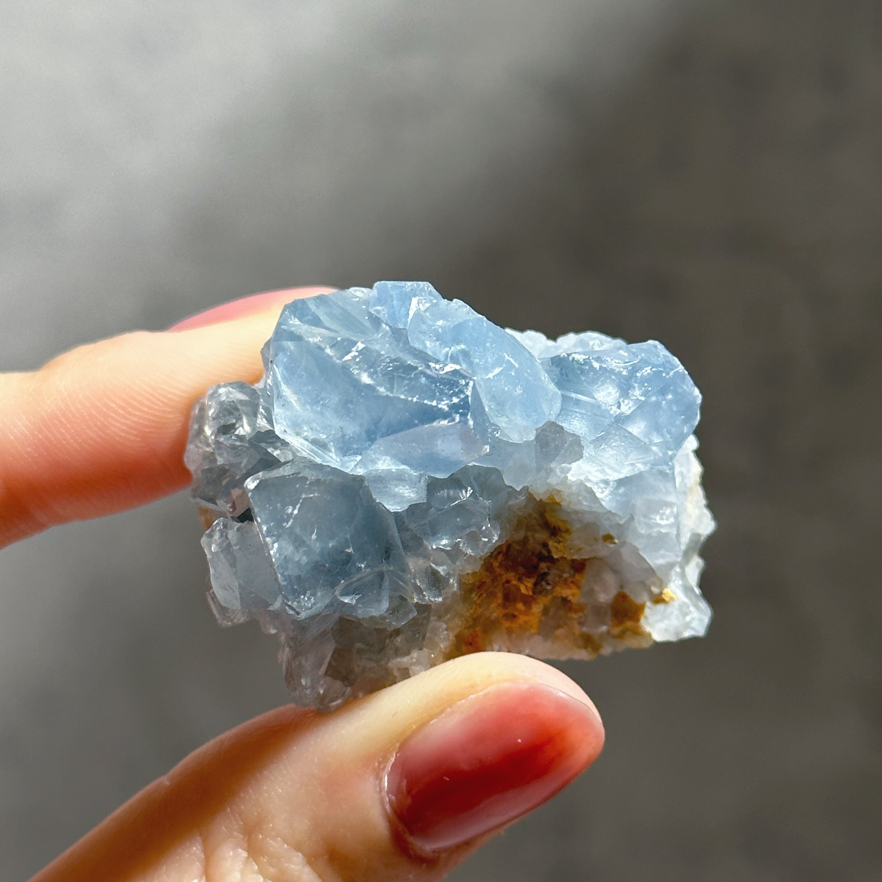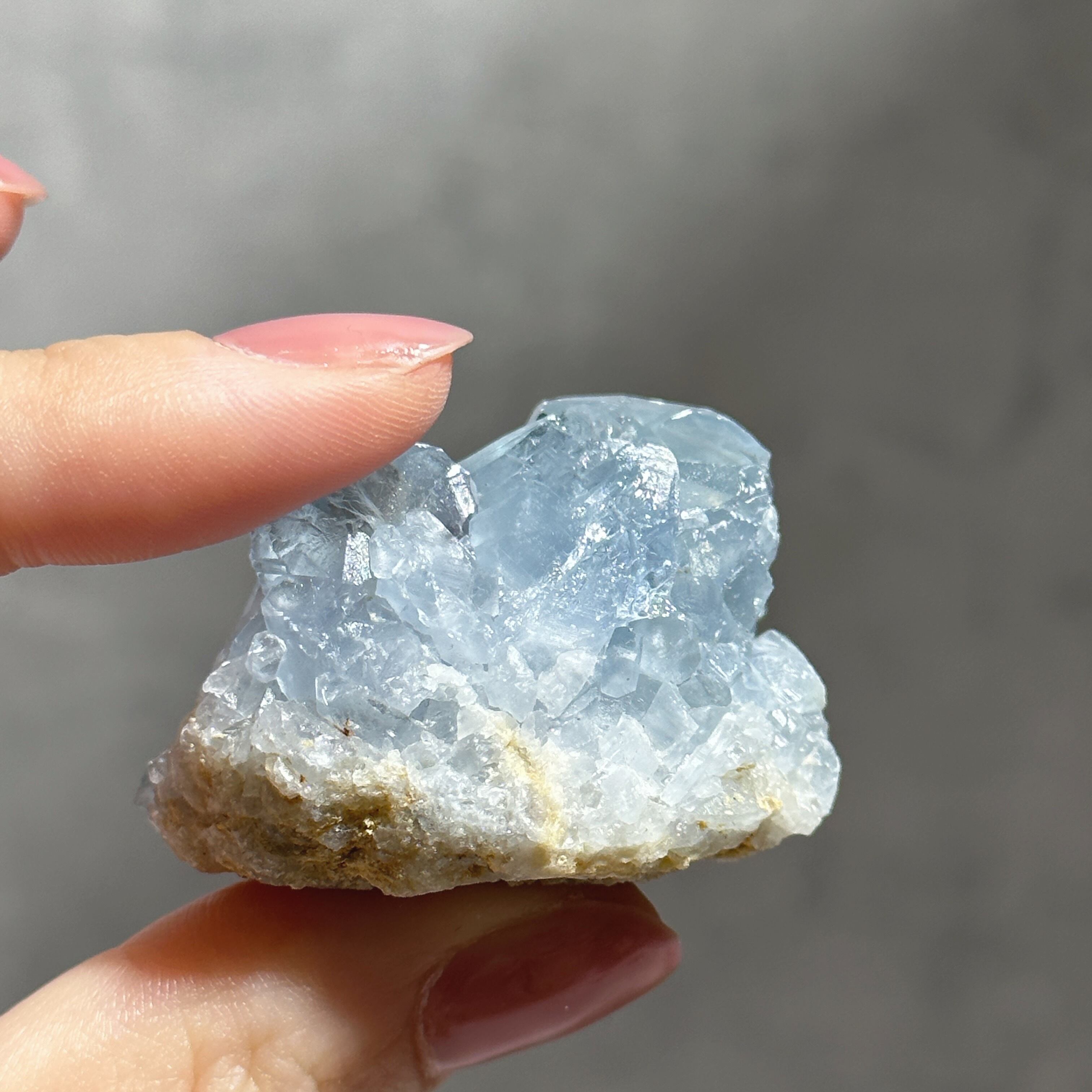 幾多あるブルーの天然石の中でも、晴れた空の穏やかさに最も近い印象があるのがセレスタイト。柔らかい色味、優しい輝きから、エンジェルを連想する人も多いようです。