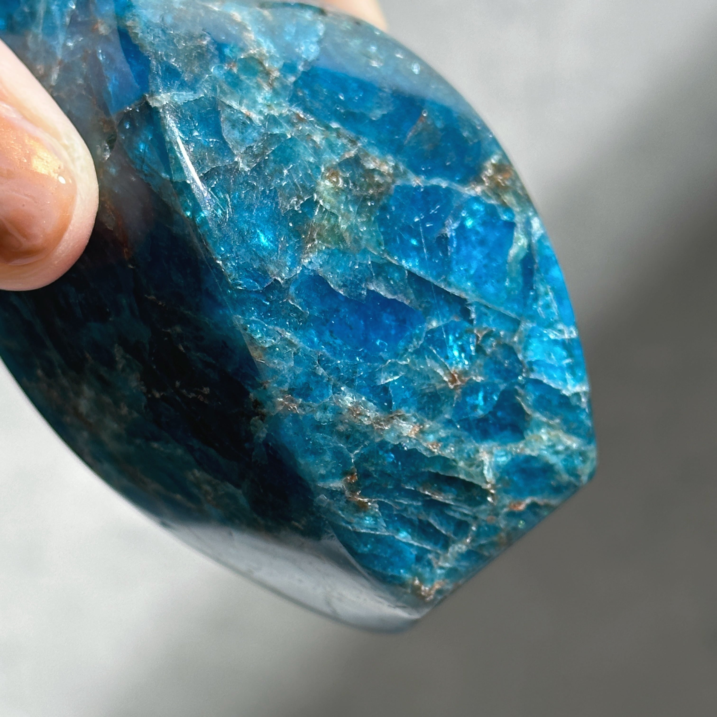 ブルーアパタイトは吸い込まれるようなピーコックブルーが美しい天然石です。