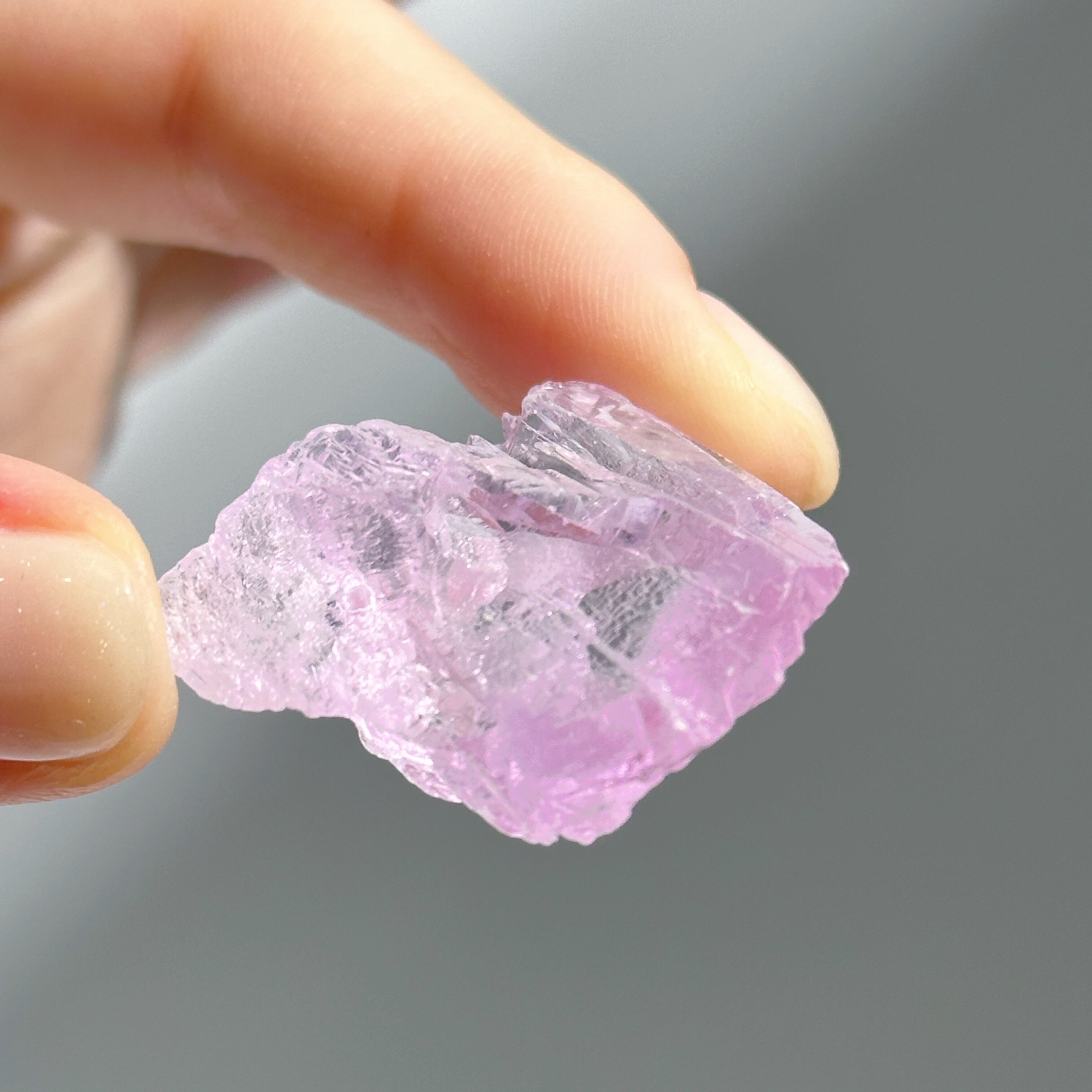 宝石質ともいえるクォリティで、ピンクから紫の魅力的な色合いで透明度もあり、向こう側が透けて見えるものもあります。