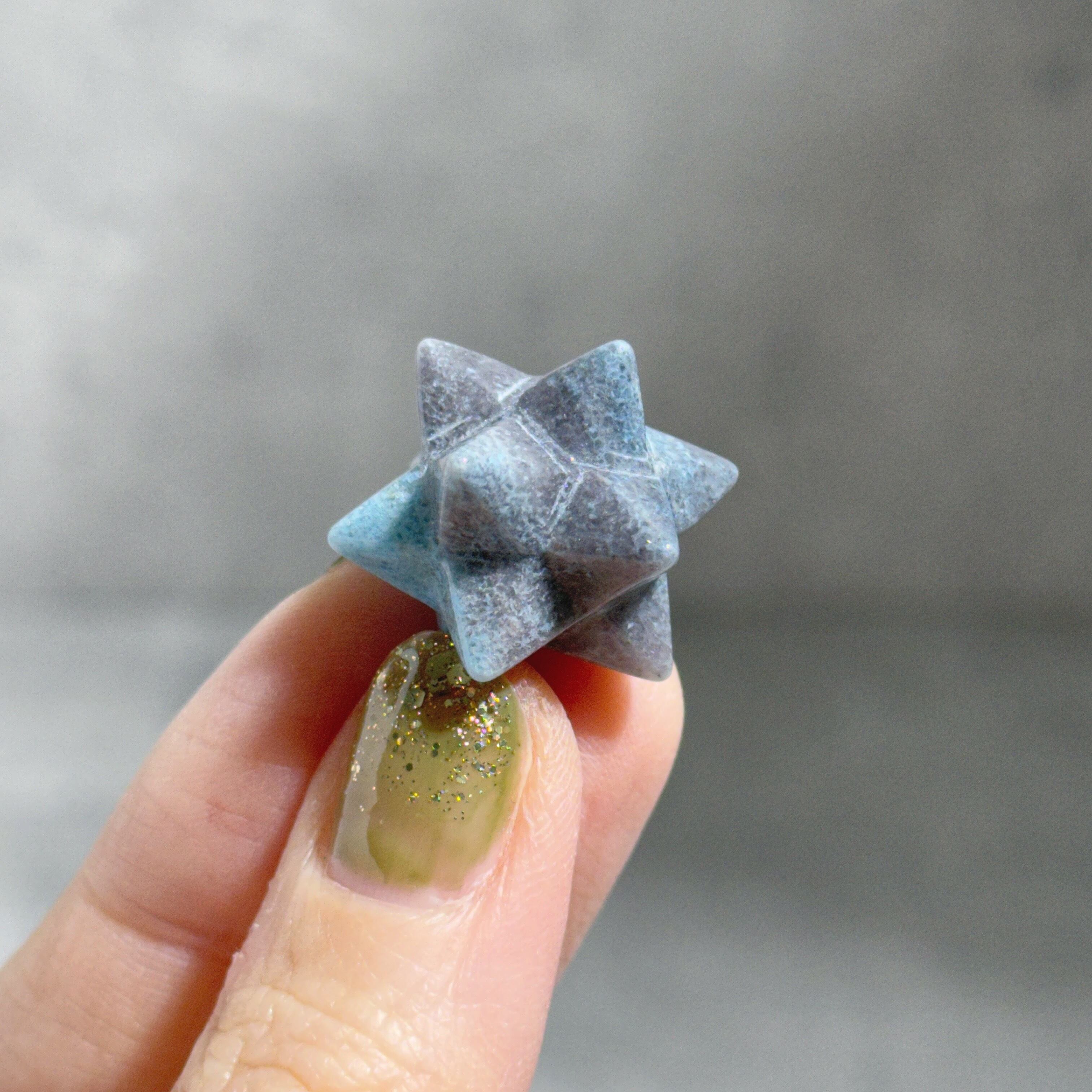 ここでは「トロレアイト」と呼びますが、トロレアイト(青)・クォーツ(白)・ラズライト(濃い青)が混じったもののようで、曲線を描くグラデーションと引き込まれるような色合いを持つ鉱物です。面によって異なる表情を見せる、世界に二つとないお品です。