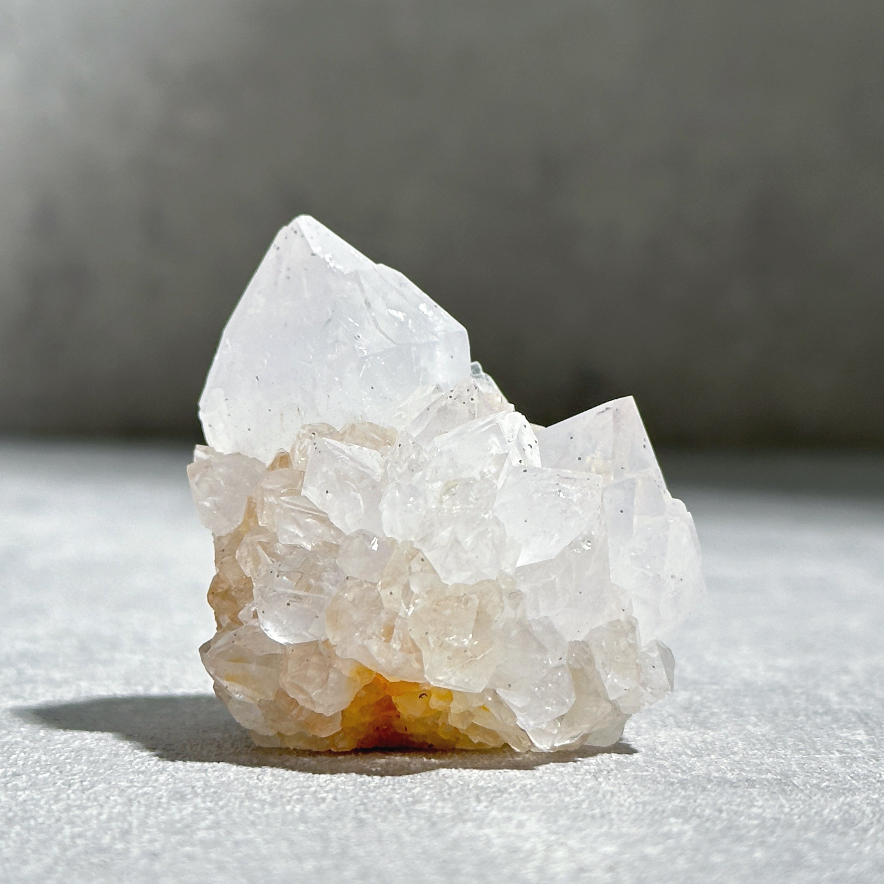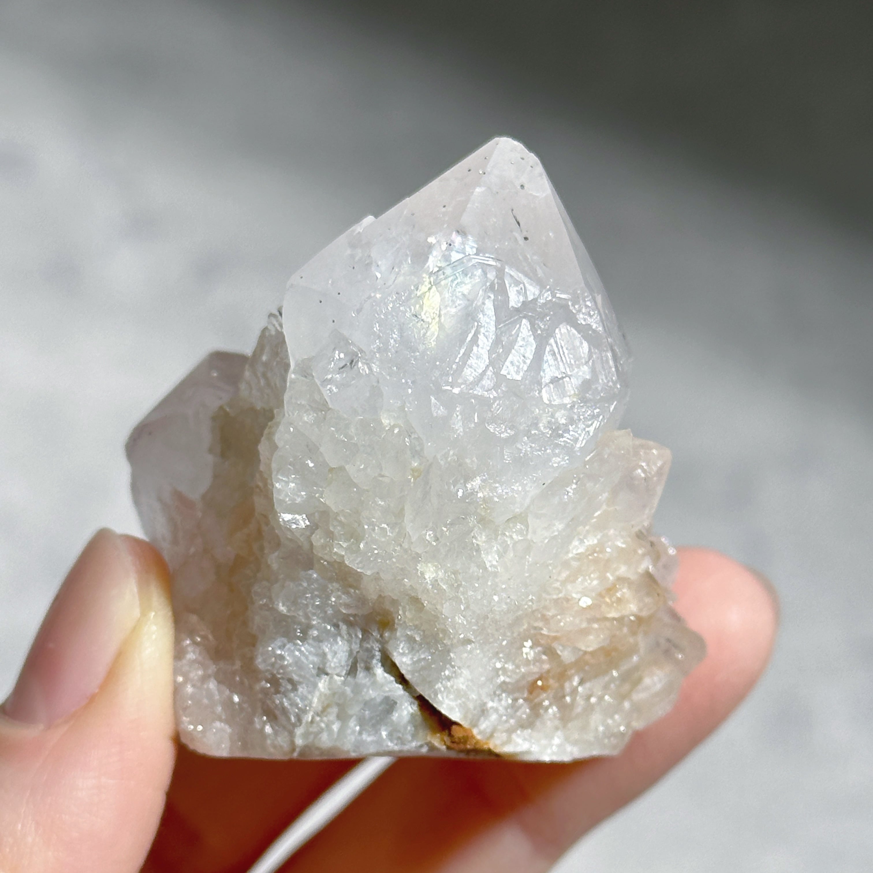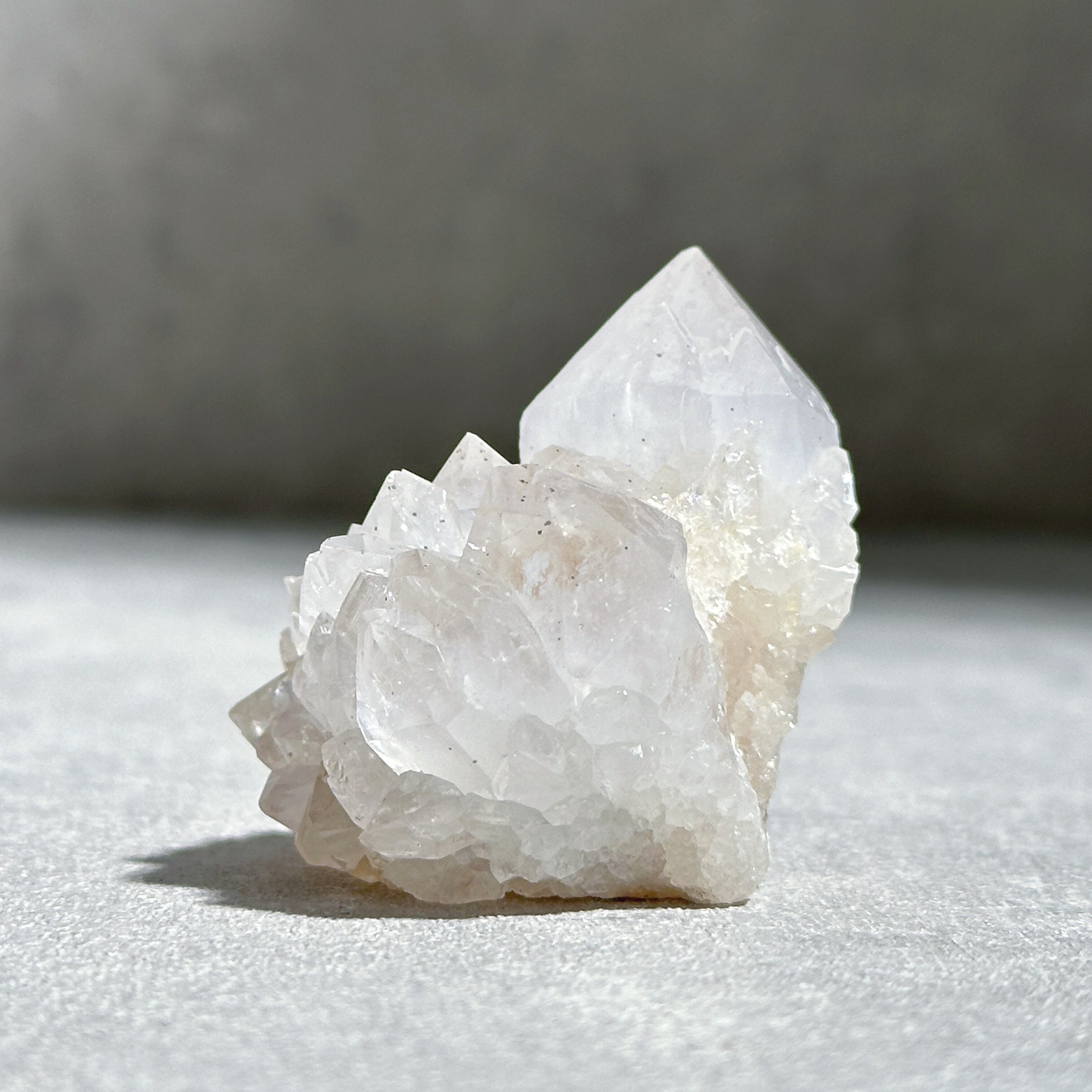 天然石の色は内包される鉱物やその量によって変化するため、ホワイトスピリットクォーツは鉄分などの含有量が少なくこのような淡い色味をしていると考えられます。