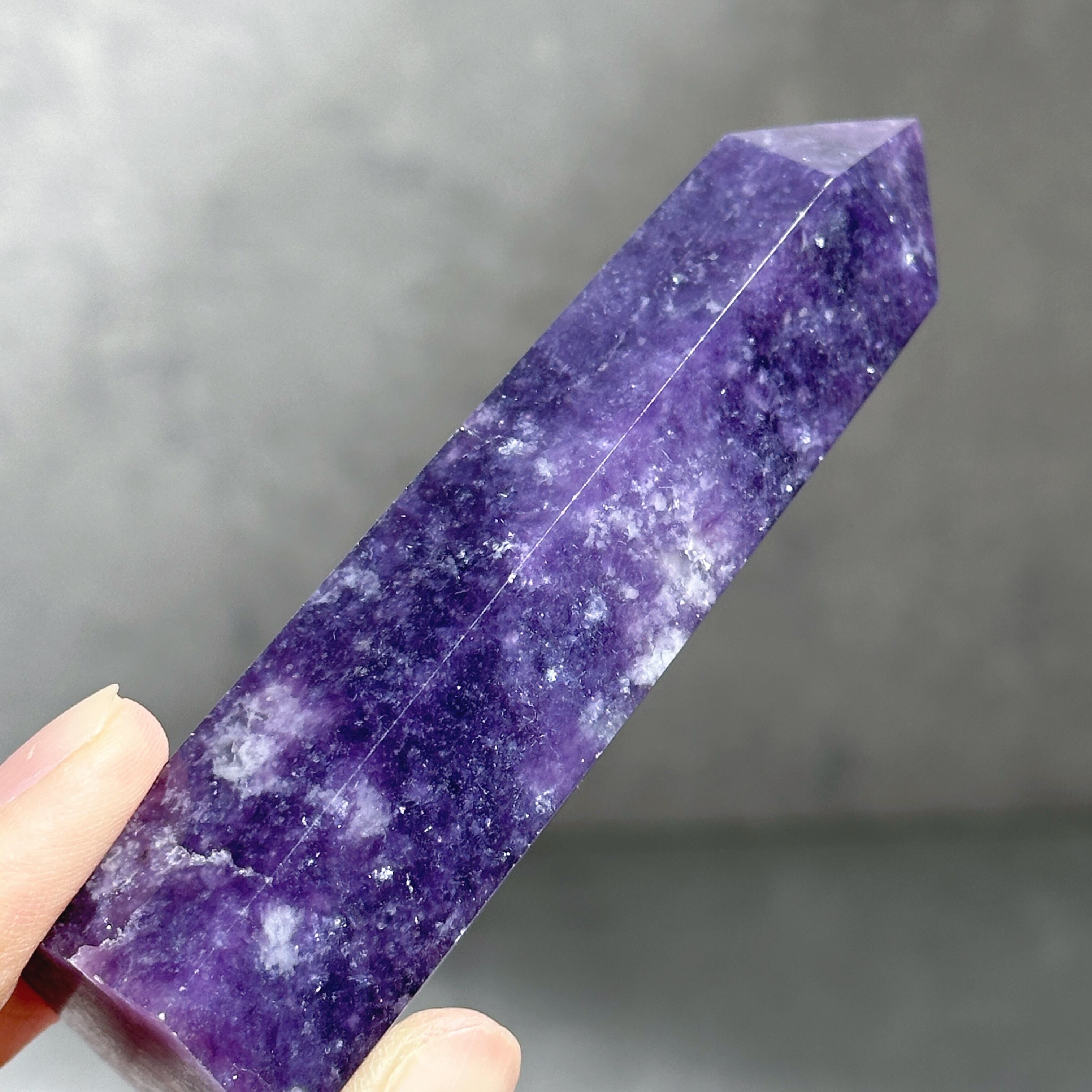 パープル色の鉱石、レピドライトの原石をタワー型に研磨しました。