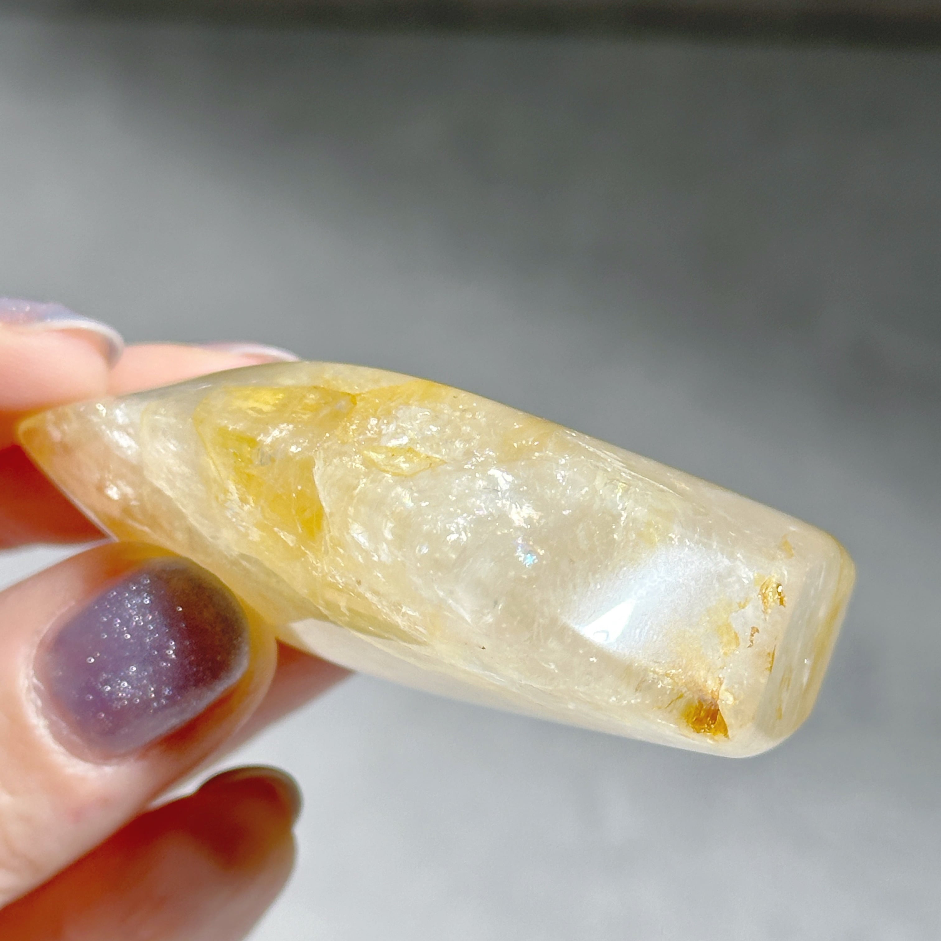クォーツに内包した時、微量であるとこのようなイエローの発色をします。