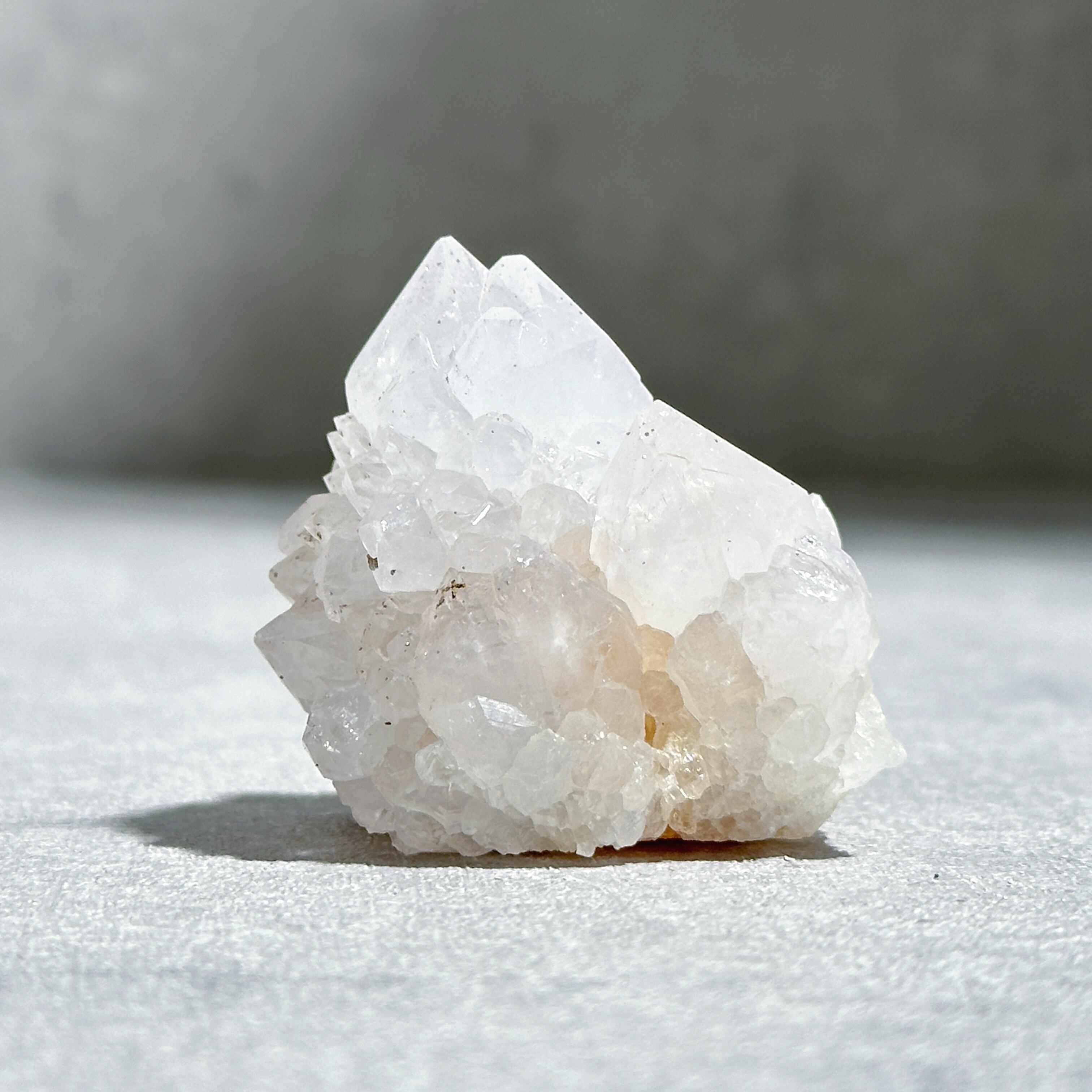 天然石の色は内包される鉱物やその量によって変化するため、ホワイトスピリットクォーツは鉄分などの含有量が少なくこのような淡い色味をしていると考えられます。