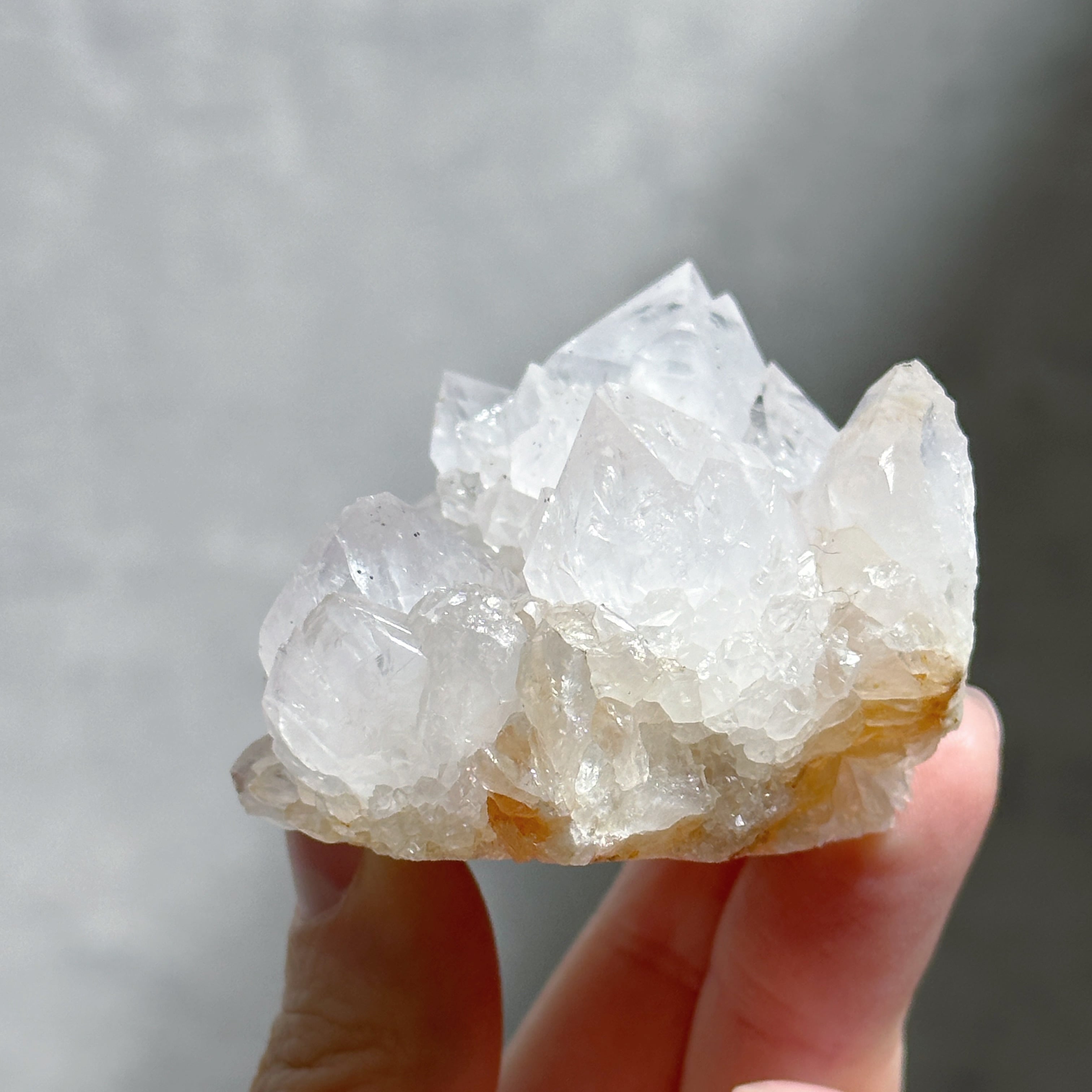 天然石の色は内包される鉱物やその量によって変化するため、ホワイトスピリットクォーツは鉄分などの含有量が少なくこのような淡い色味をしていると考えられます。