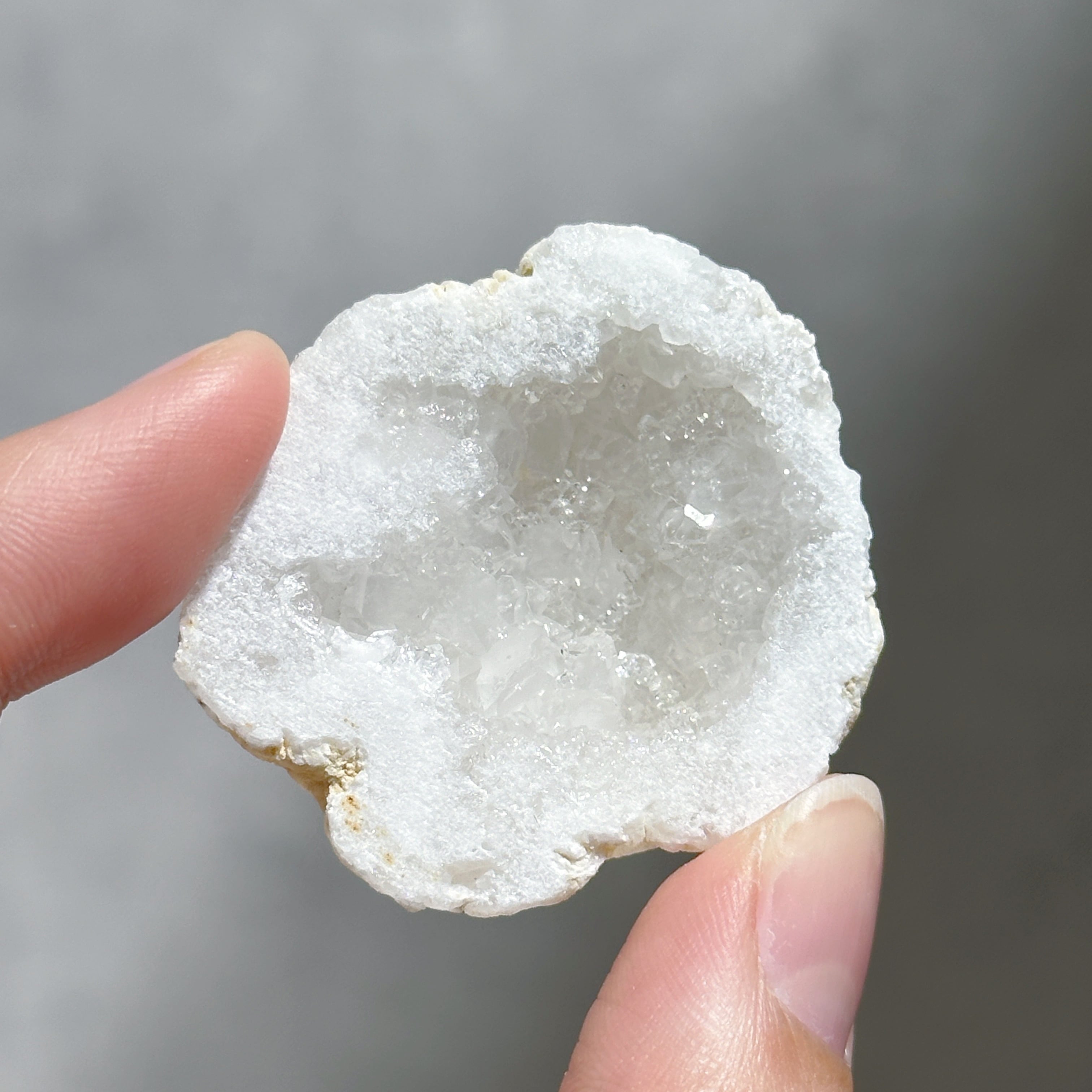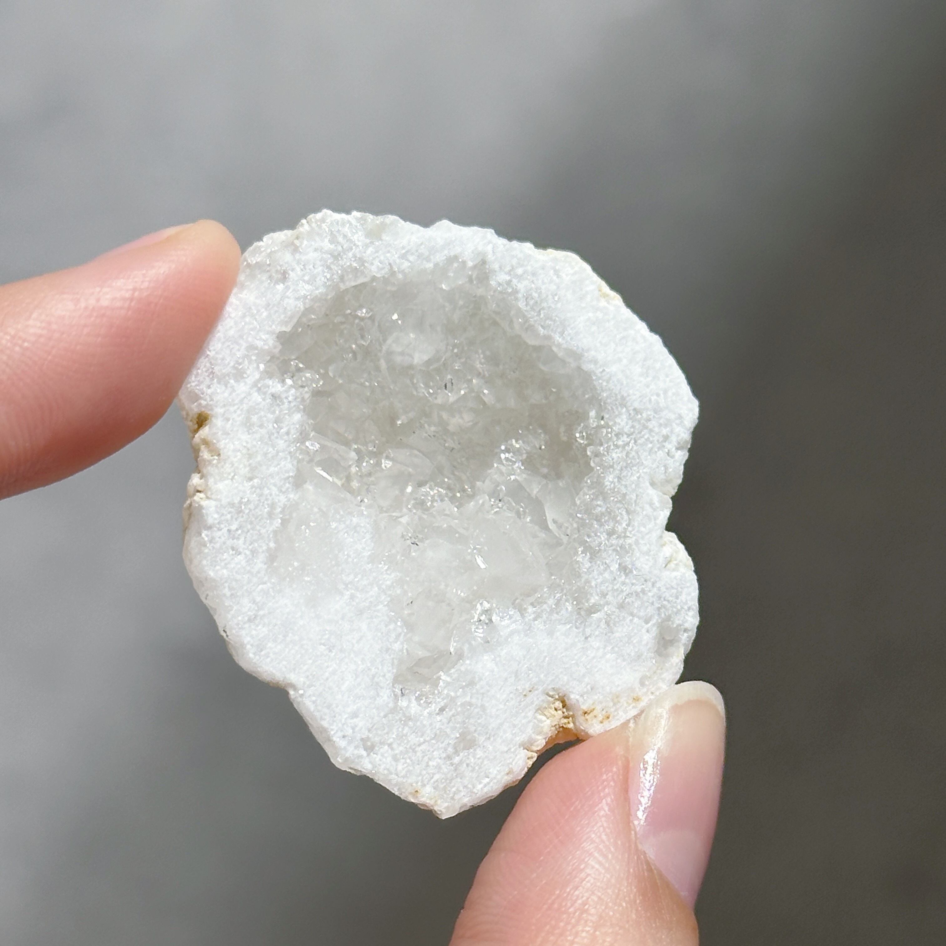 手のひらに収まるサイズ感が可愛い、小さな水晶(クリアクォーツ)のジオードです。