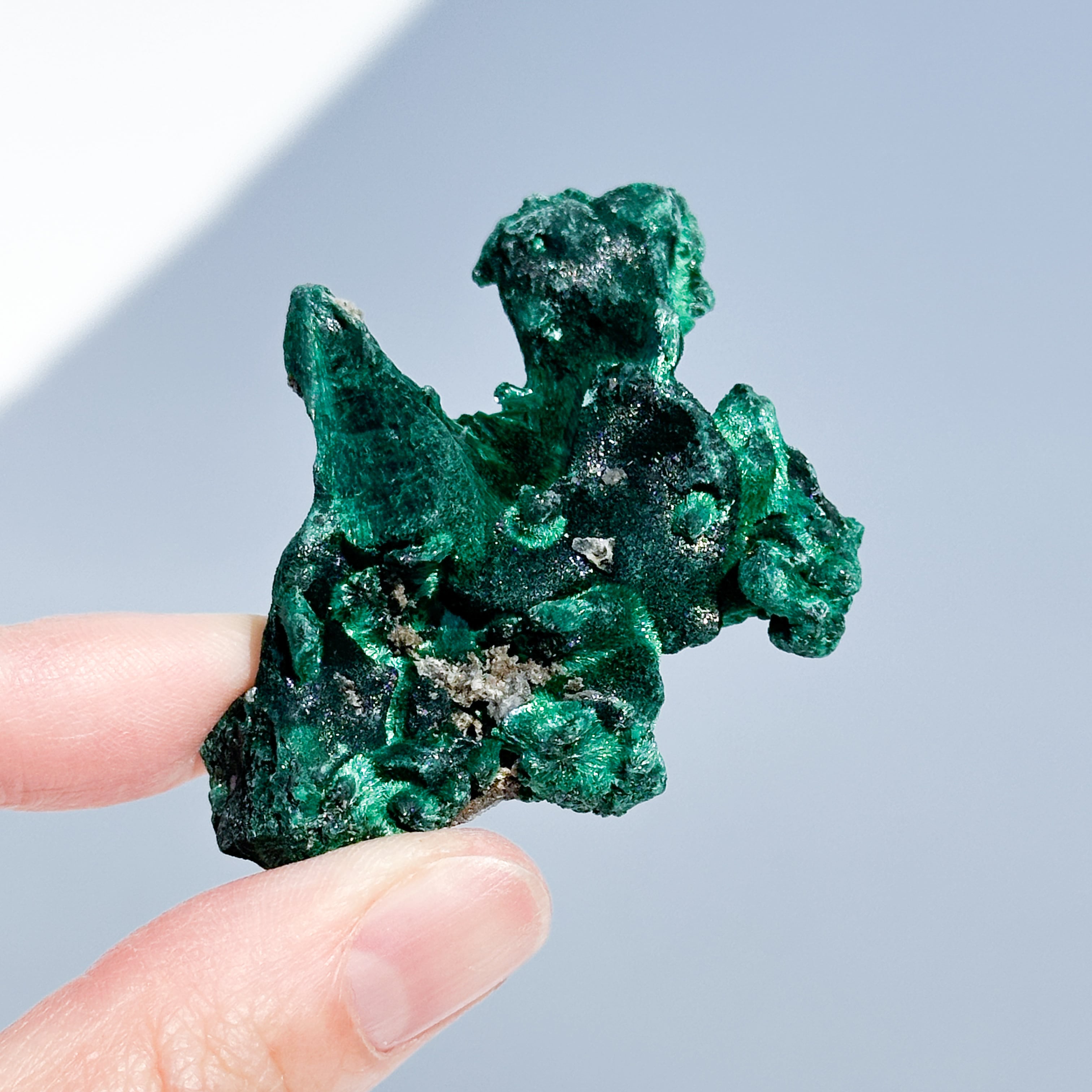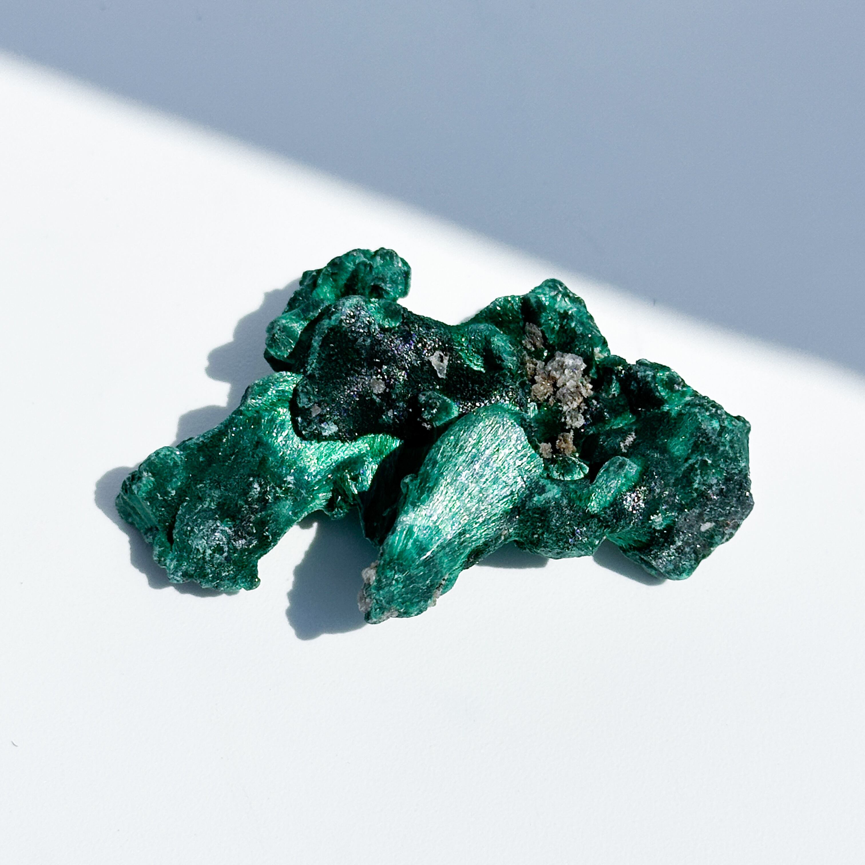 今回ご紹介するマラカイトは、繊維状の結晶がクラスターになったもの。