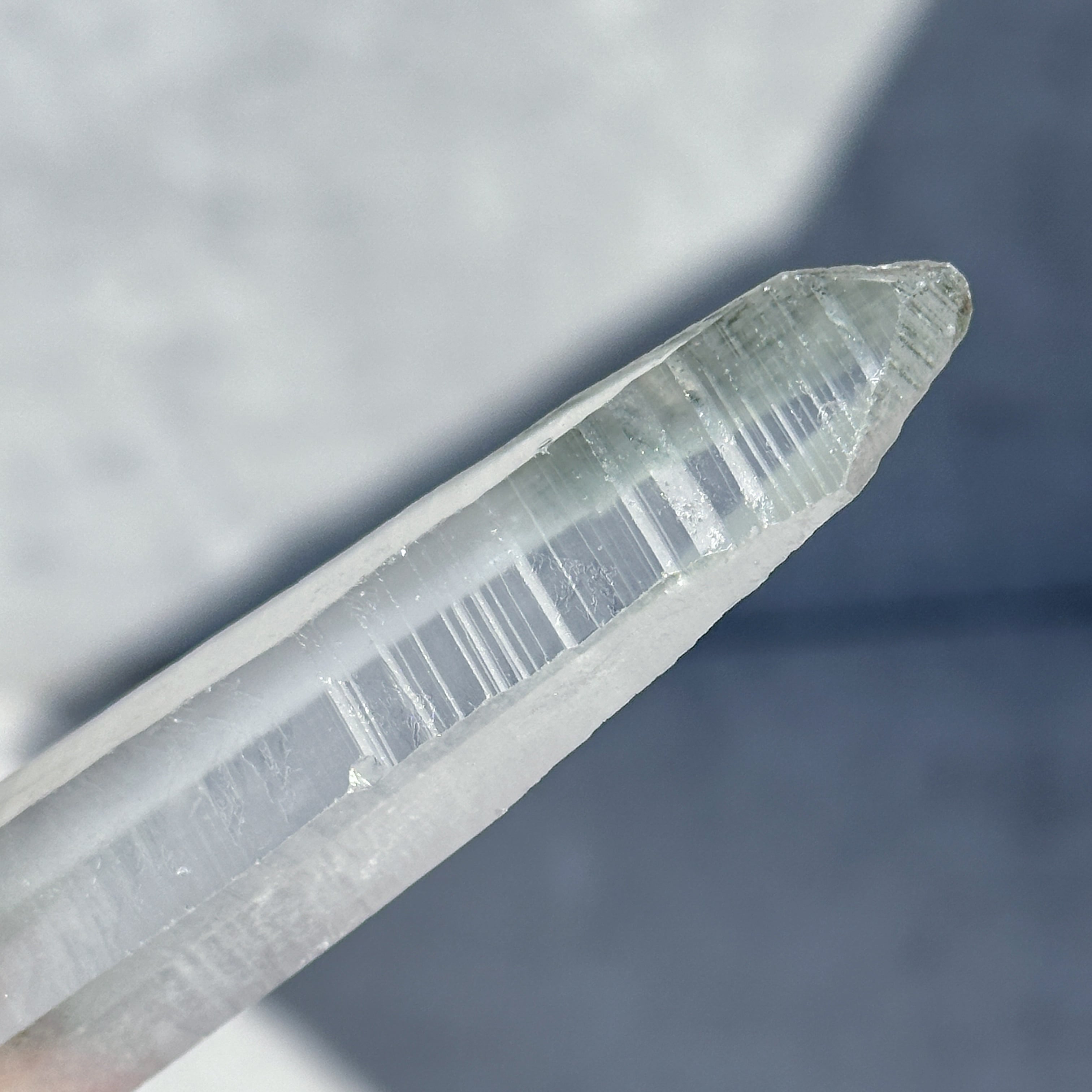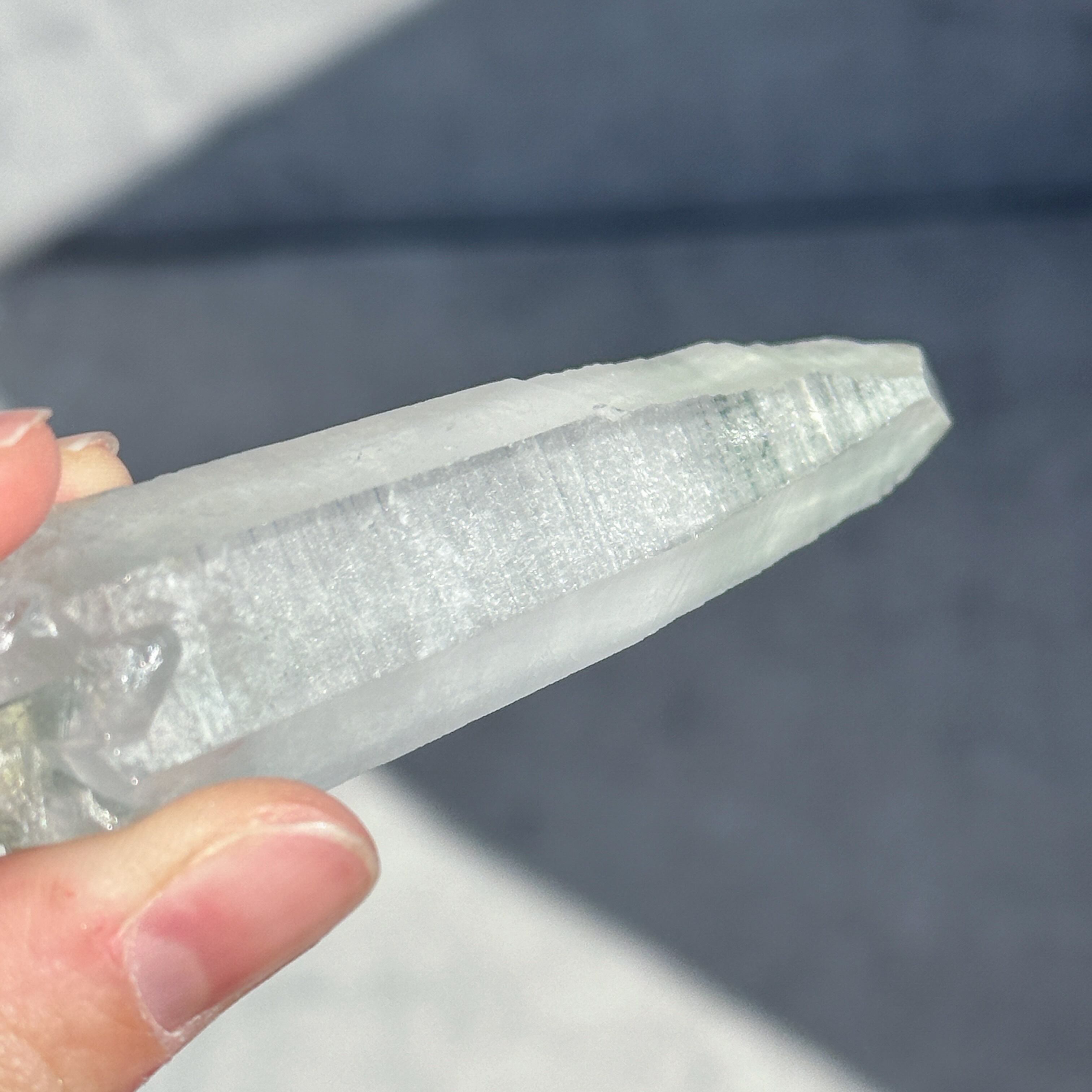 上部のファセット面は曇りなく研磨してありますが、一部のサイド面にはレムリアンレッジと呼ばれるバーコード状の模様を残してあります。