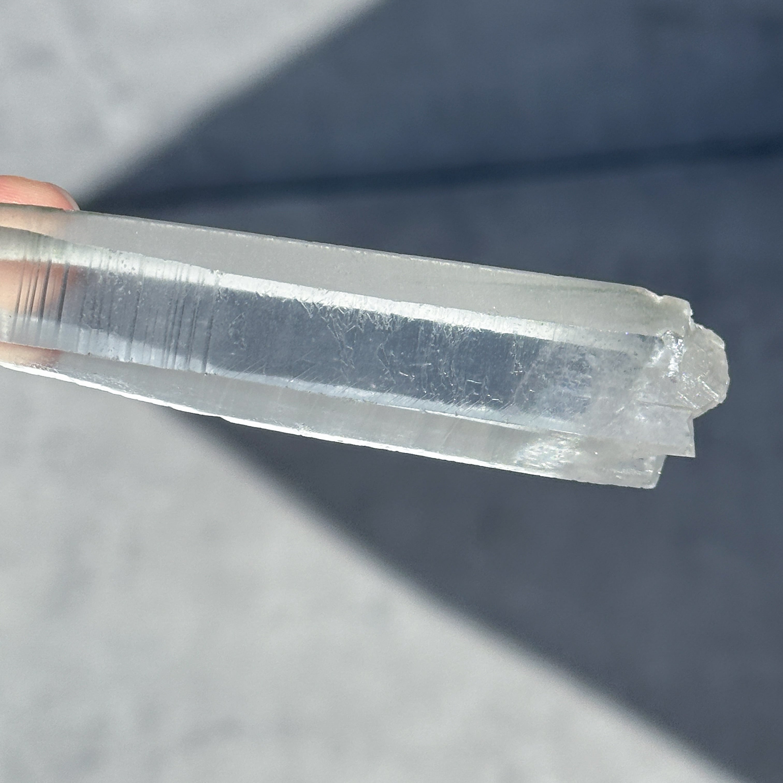 水晶の内部はほとんど曇りがなく、ガラスのように透き通って向こう側を覗けるほどです。