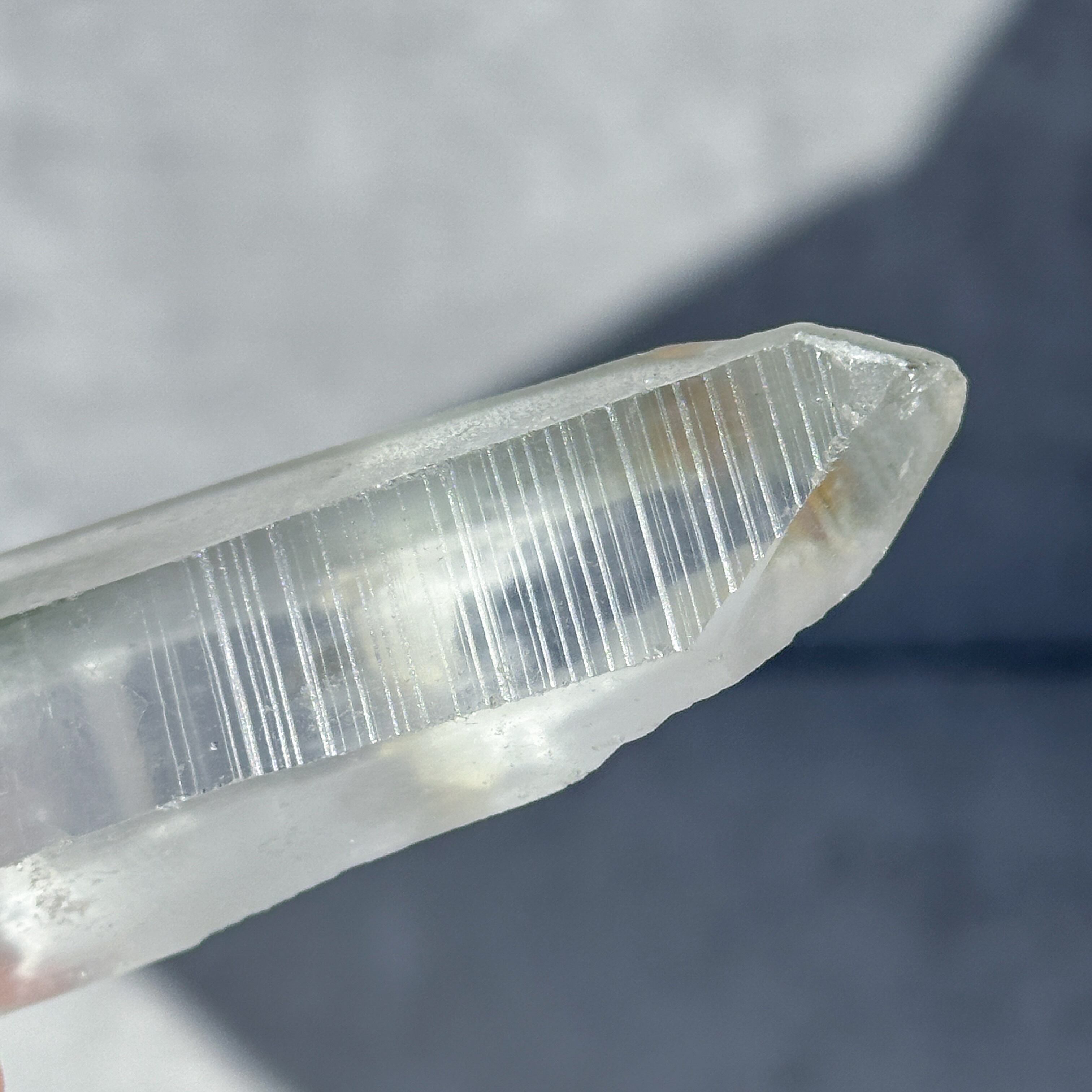 上部のファセット面は曇りなく研磨してありますが、一部のサイド面にはレムリアンレッジと呼ばれるバーコード状の模様を残してあります。