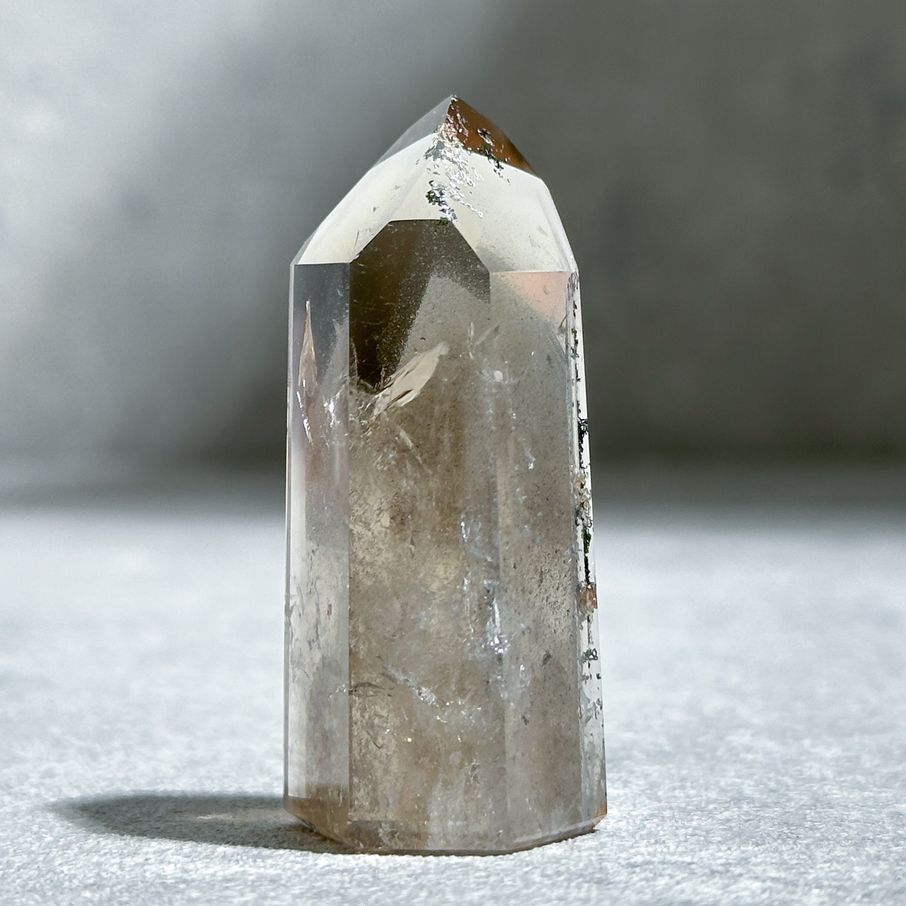 今回はファントムが美しい、ブラジル産のナチュラルカラーの「スモーキーファントムクォーツ」のタワーをご紹介します。透明感も素晴らしい美しさです。