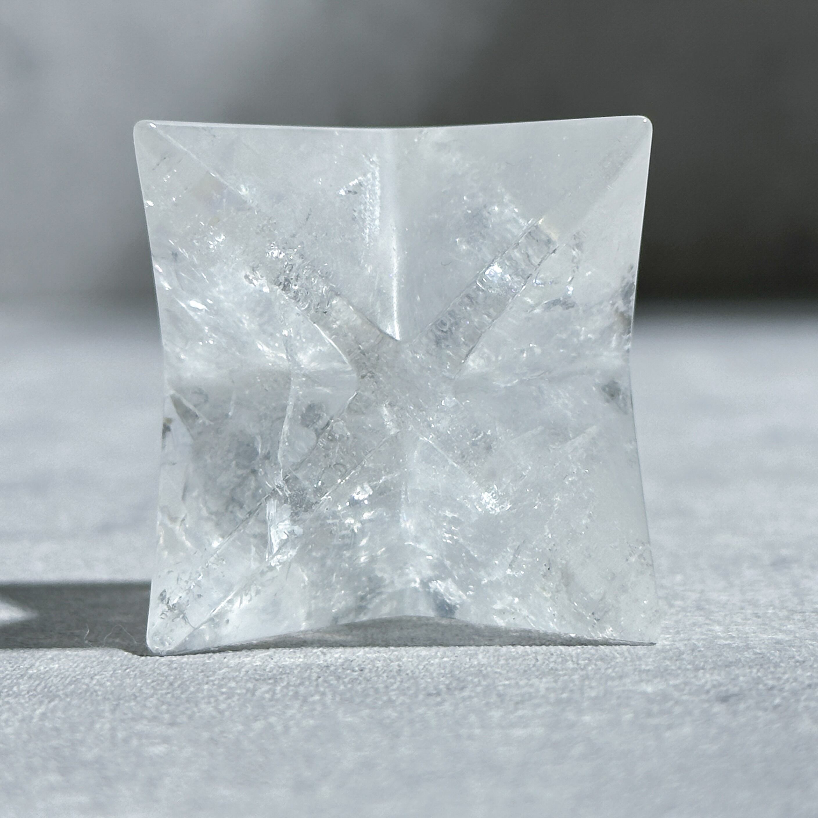 ブラジル・ミナスジェライス産のクリアクォーツを、マカバ型に研磨したものです。