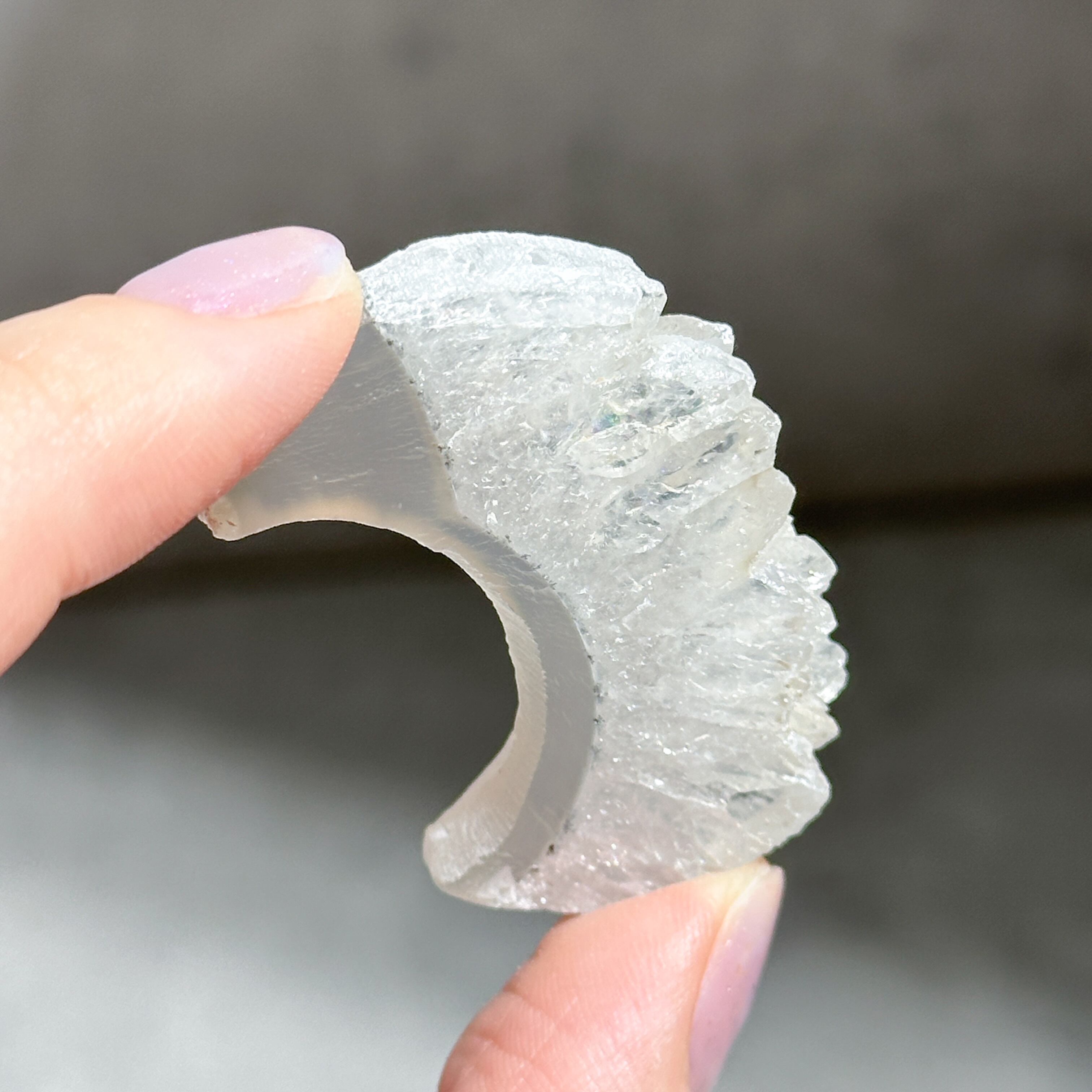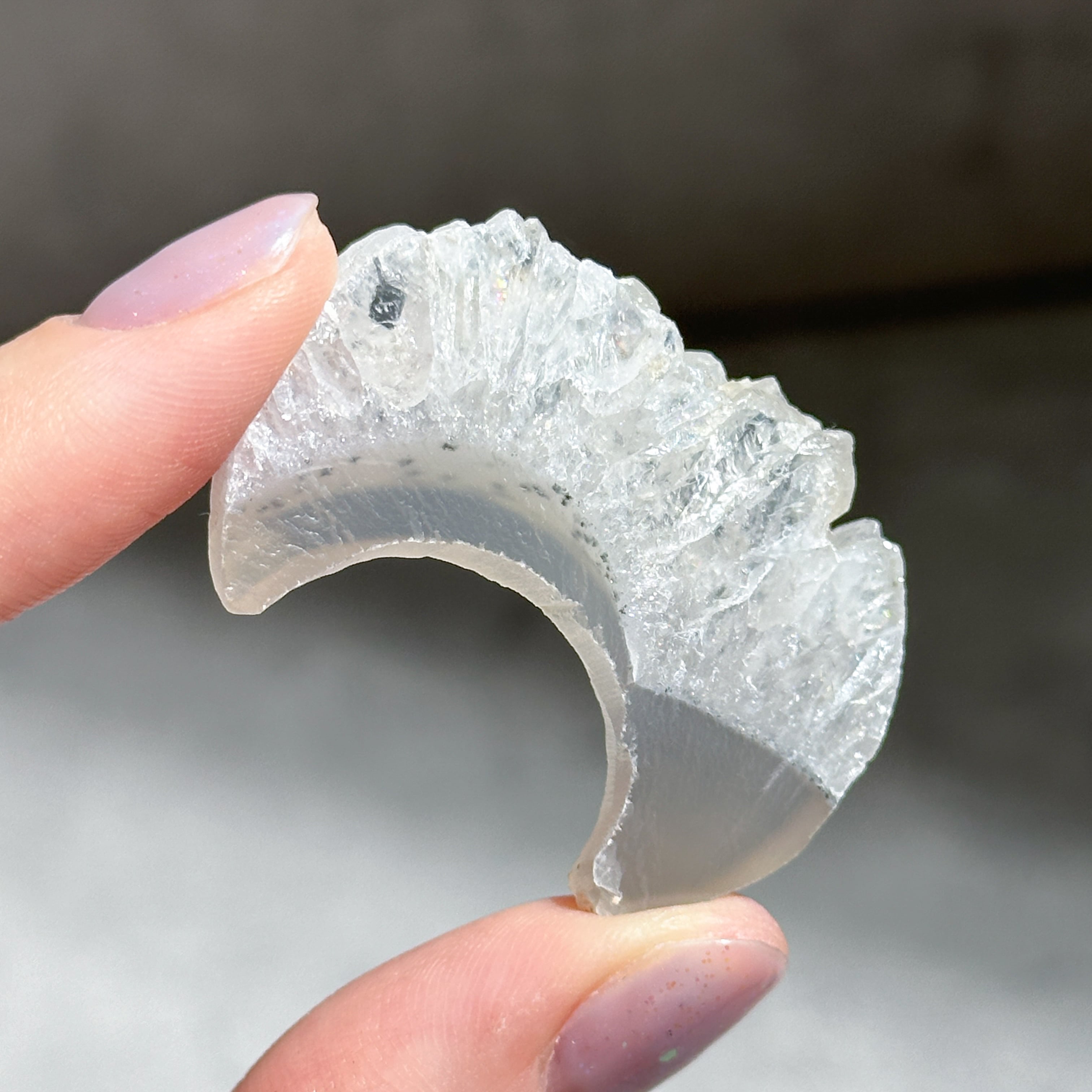 アゲート(瑪瑙)上にクリアクォーツが結晶化した原石をスライスし、