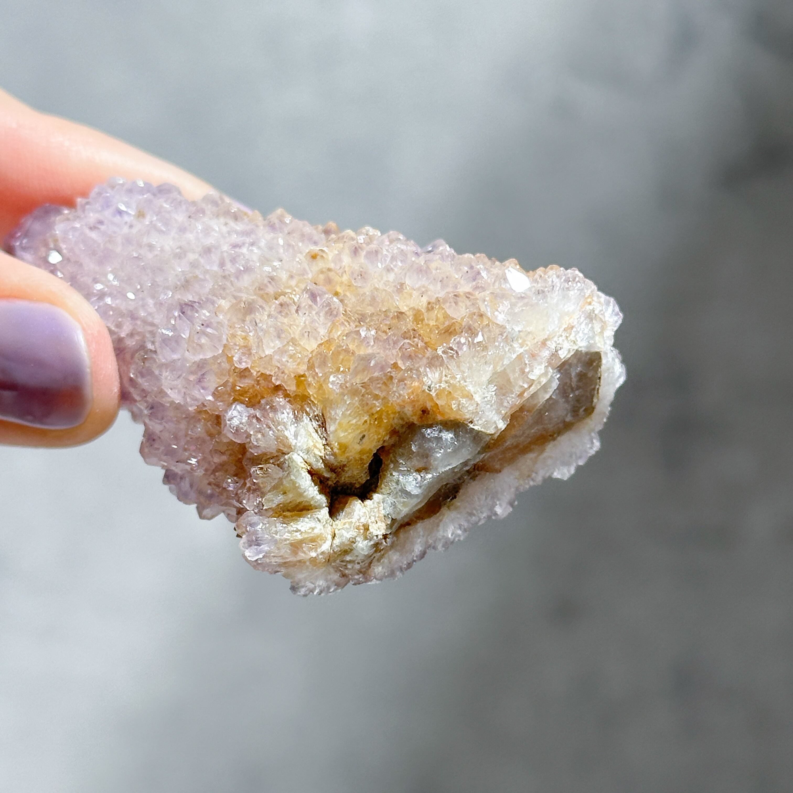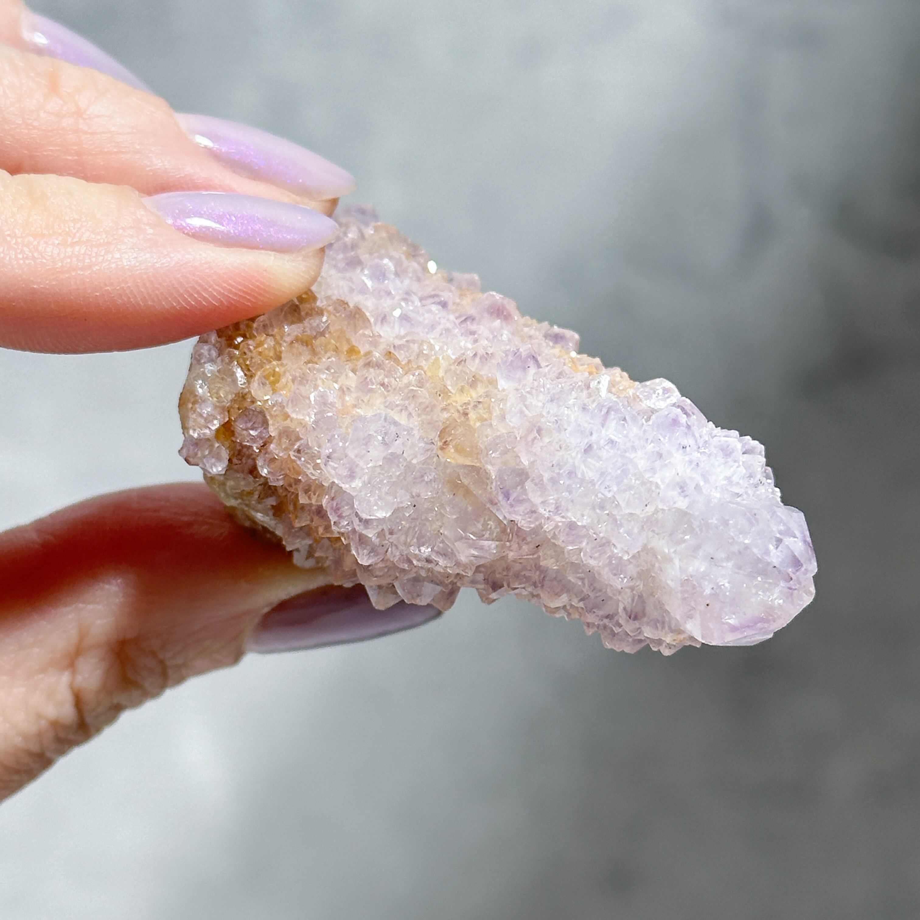 砂糖菓子のように美しい、ライラック色(淡い紫色)のスピリットクォーツのクラスターを、