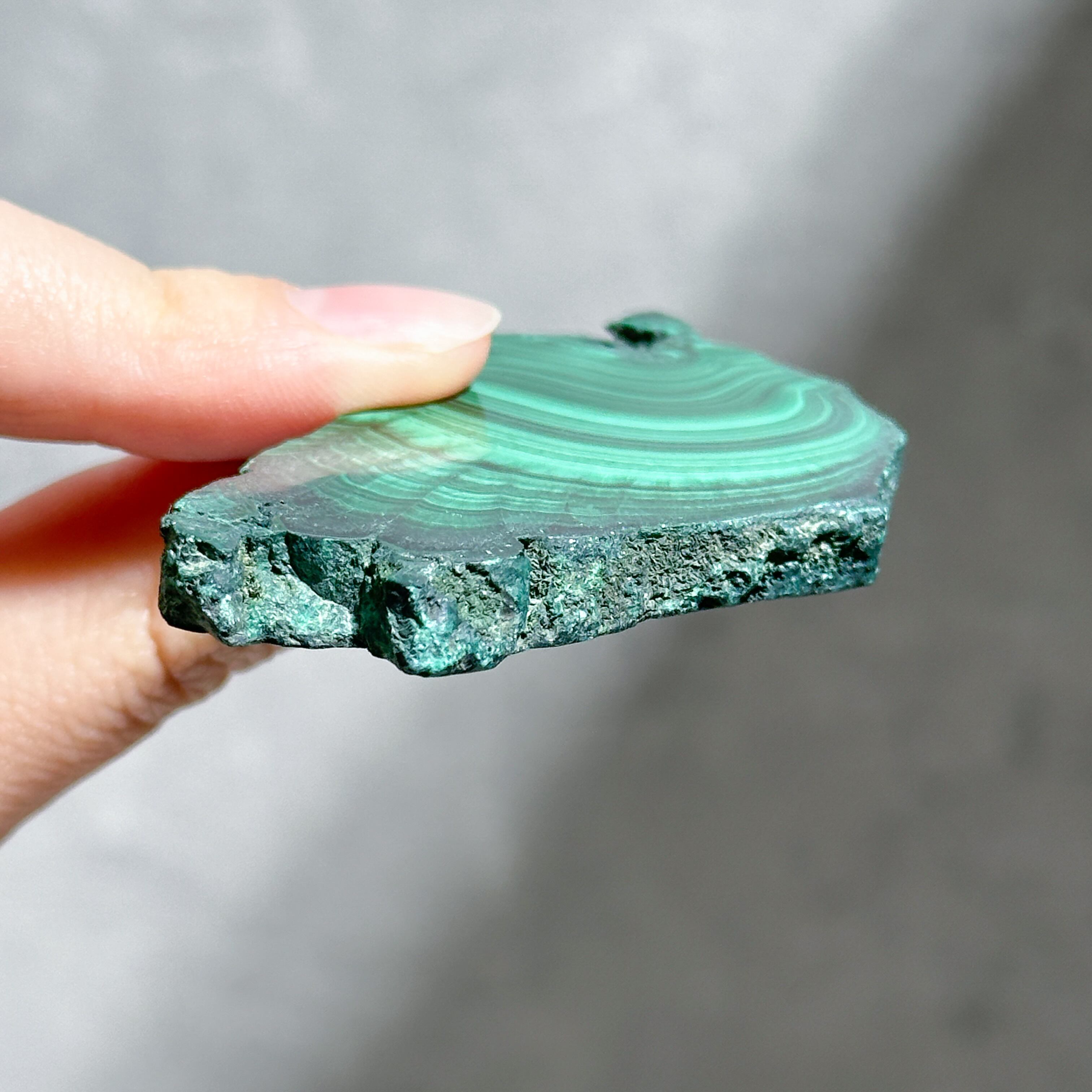 今回ご紹介するマラカイトは、コンゴ産の原石を板状にスライスしたもの。