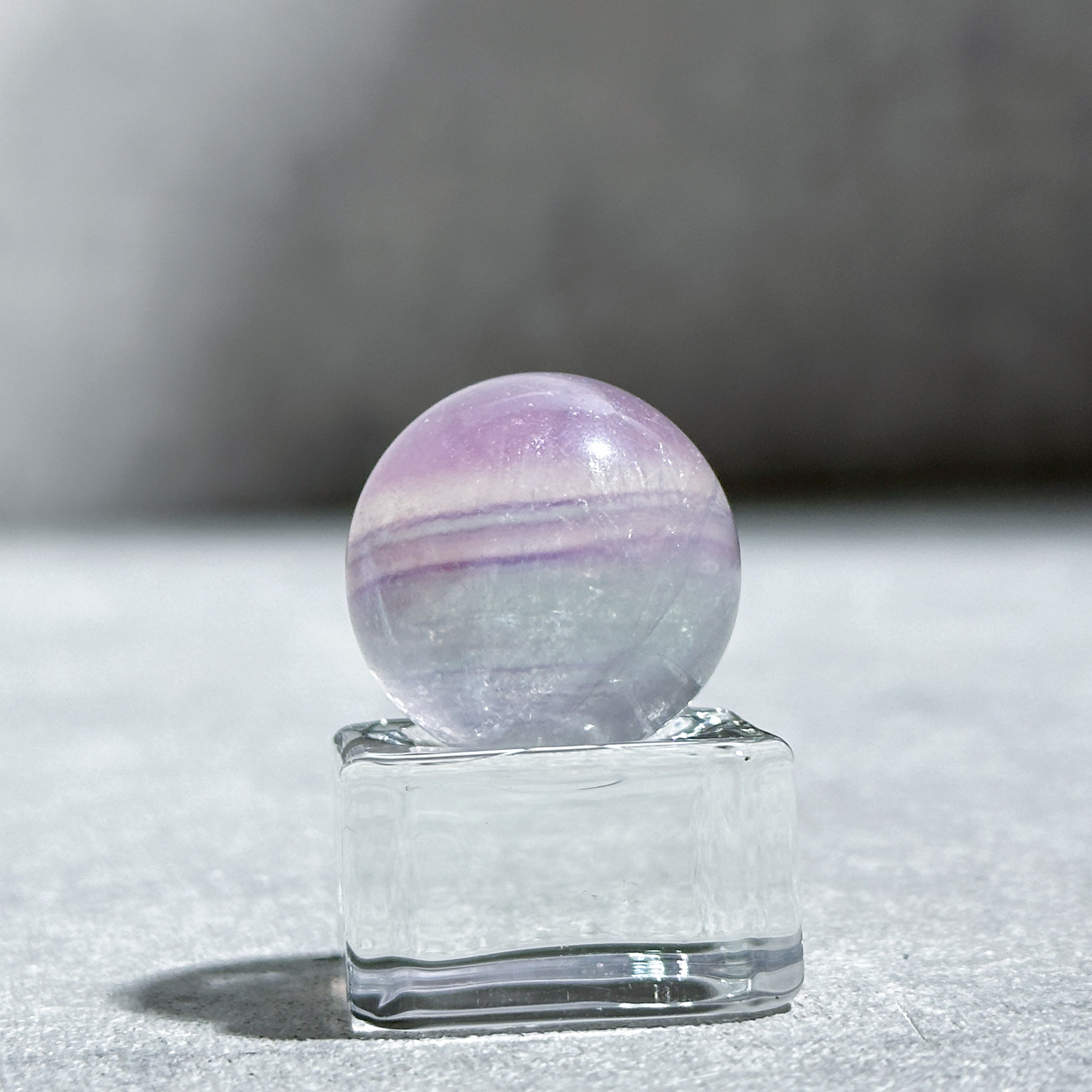 レインボーフローライトは複数のカラー(透明・パープル・ブルー・ピンク・グリーン)が共生し、水面のような曲線の模様を生み出しています。