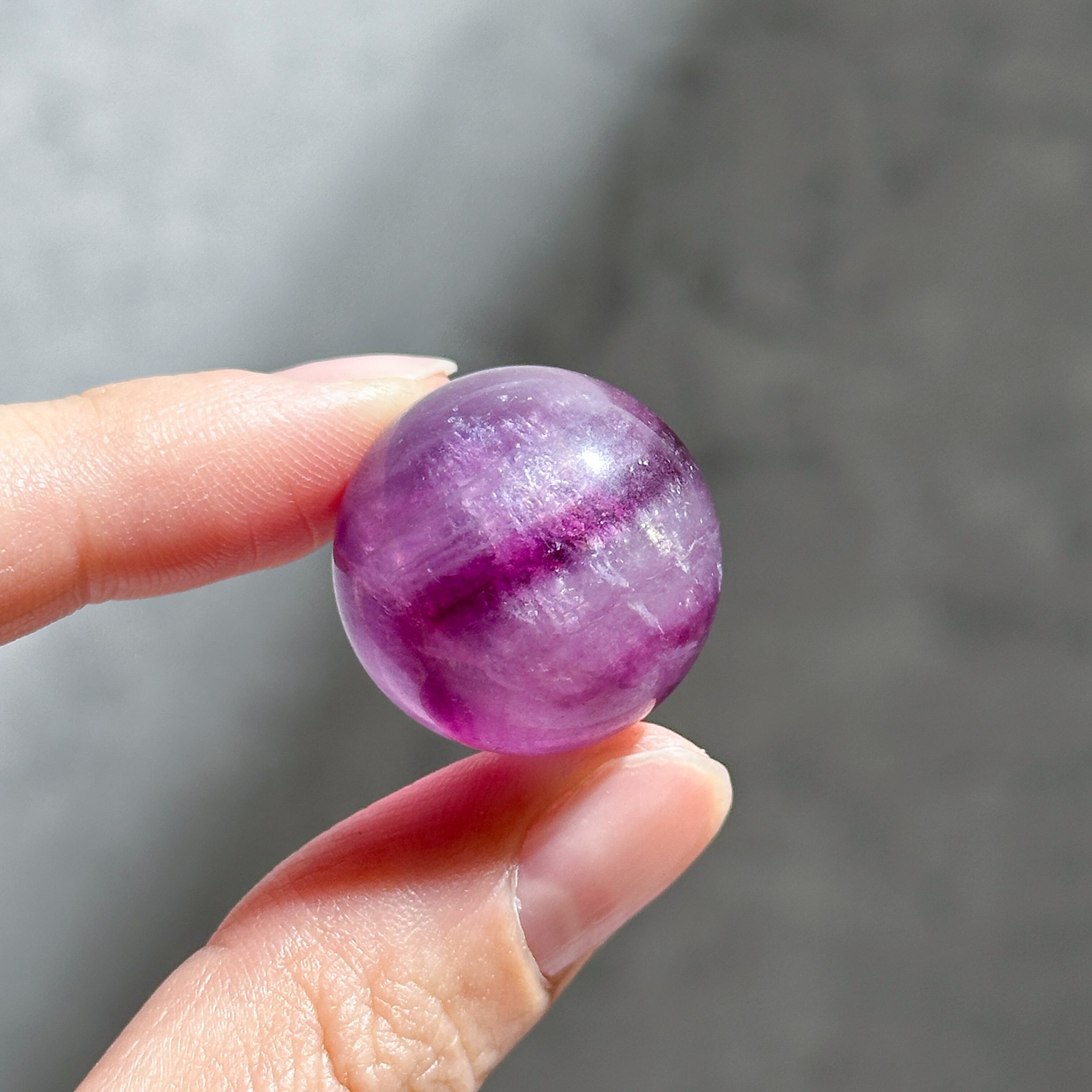 レインボーフローライトは複数のカラー(透明・パープル・ブルー・ピンク・グリーン)が共生し、水面のような曲線の模様を生み出しています。