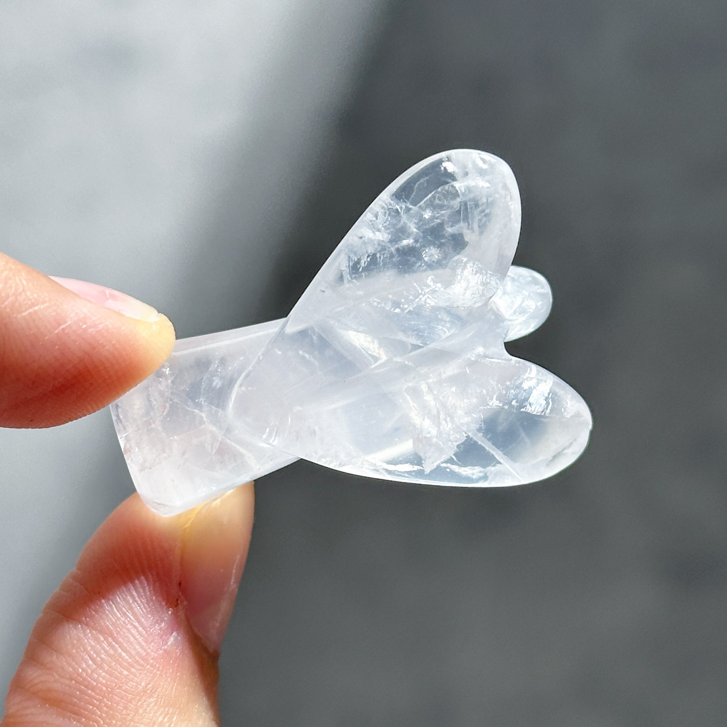 ローズクォーツを、小さなエンジェルの形に彫刻いたしました。