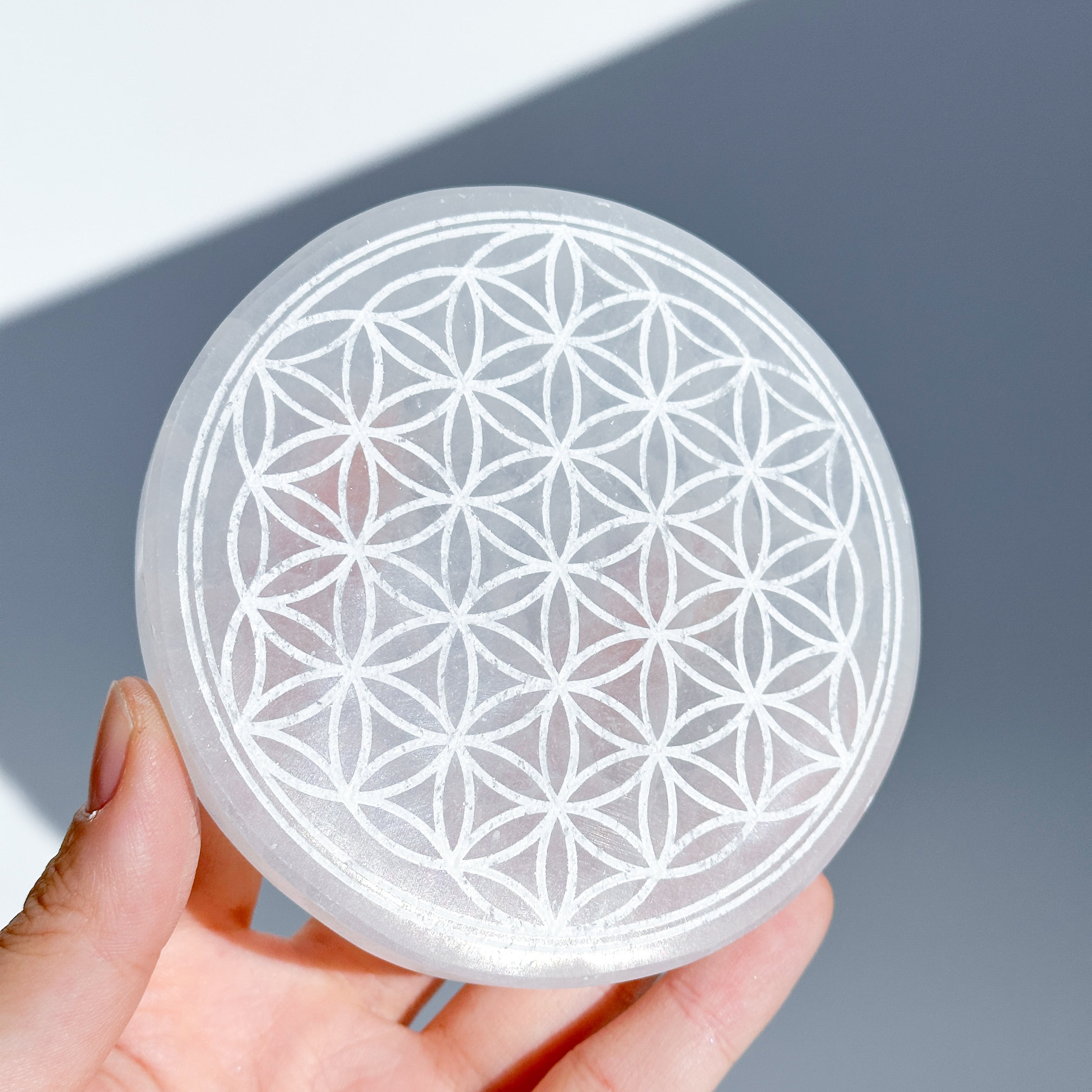 セレナイトのプレート(フラワーオブライフ)丸形01◇Selenite Flower of Life◇クリスタルグリッド◇神聖幾何学